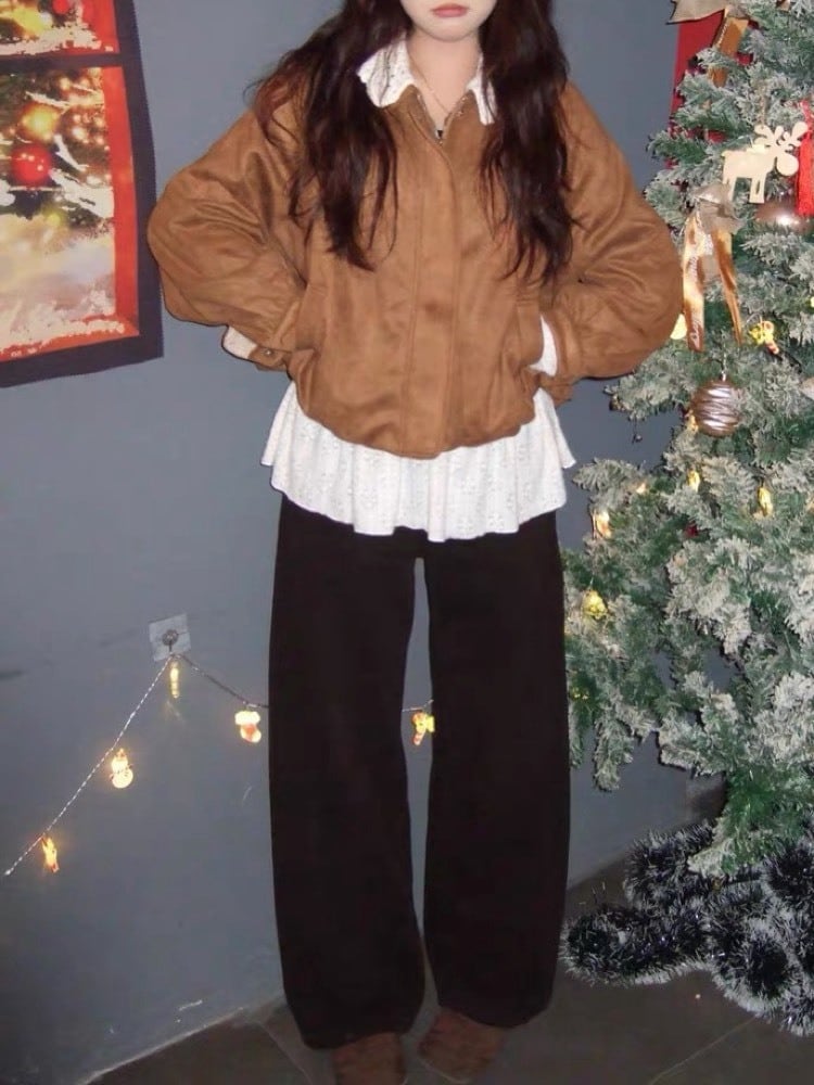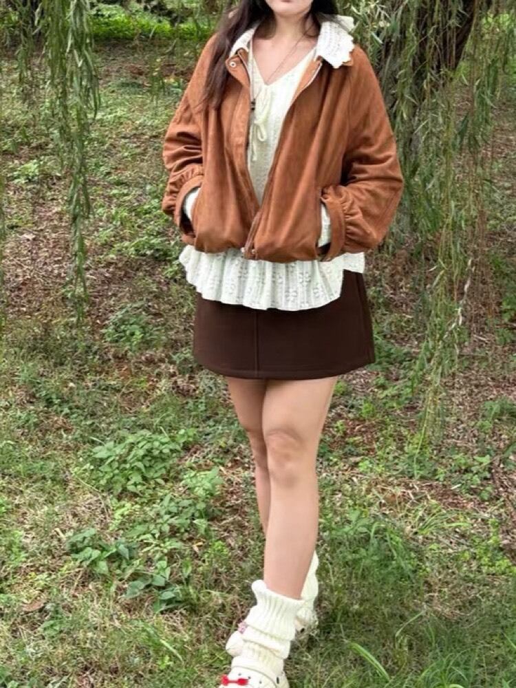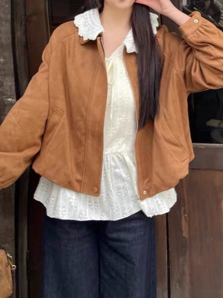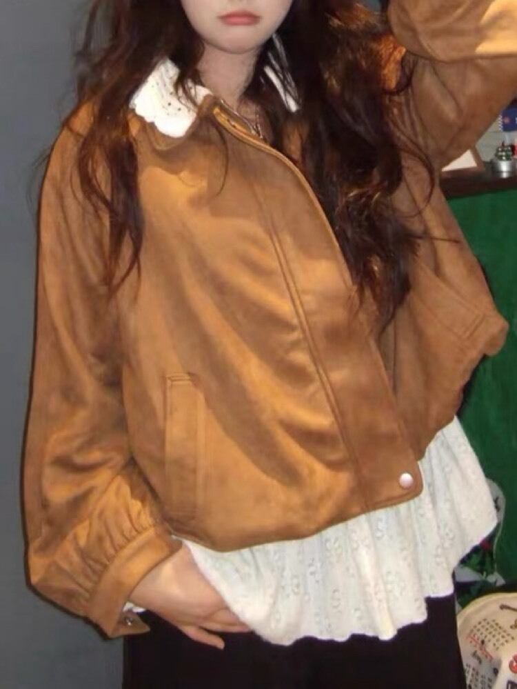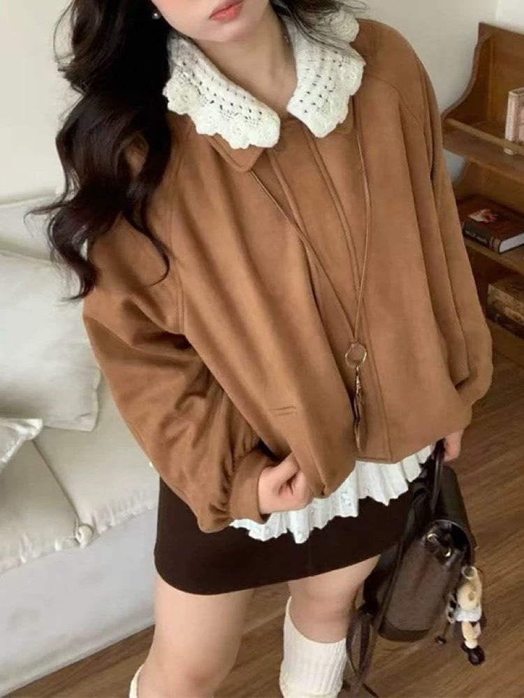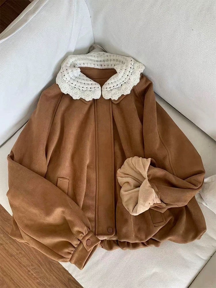 羽織るだけでやさしく可愛い レース襟付きジャケット 秋冬 おしゃれ 大人可愛い カジュアル 甘辛 おでかけ デート体型カバー 大きいサイズ 韓国 CH11377