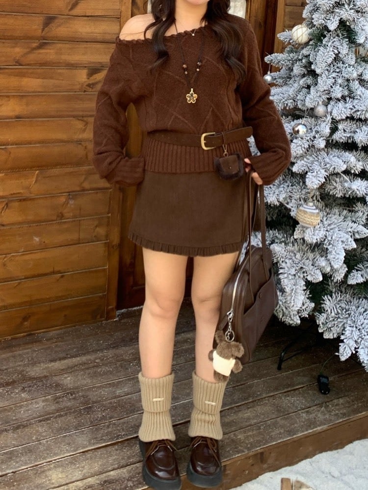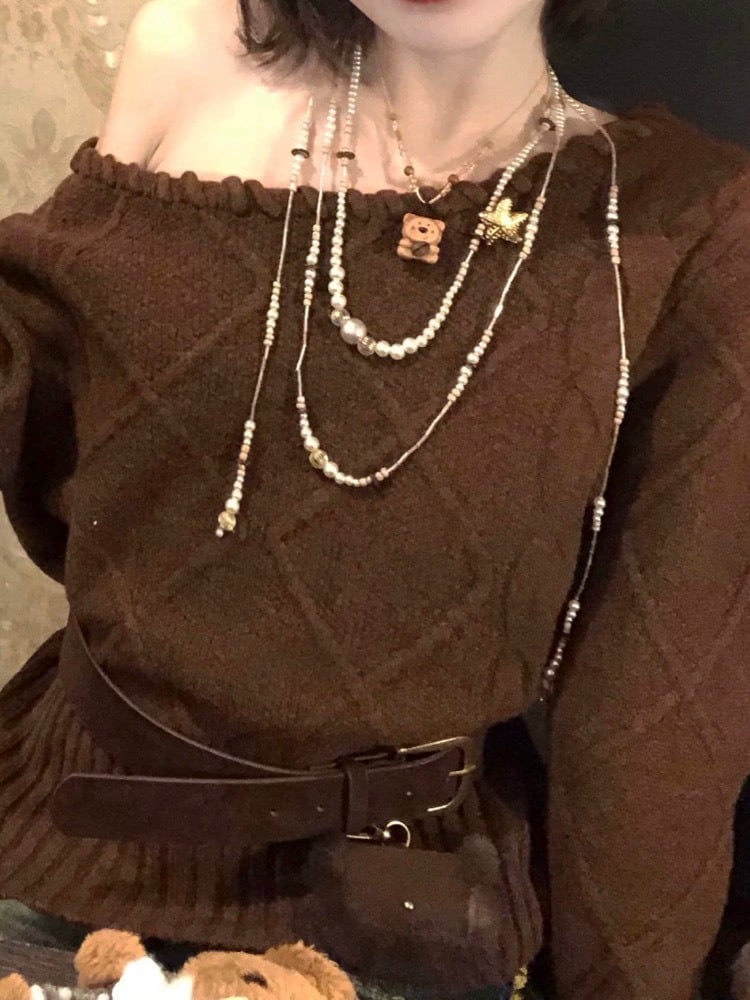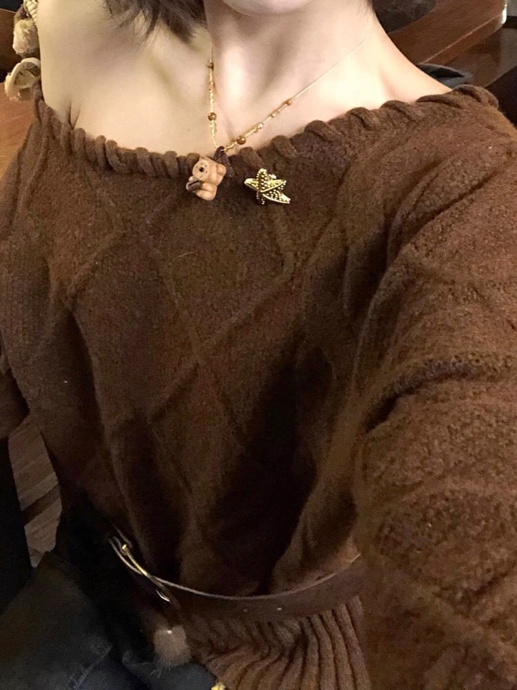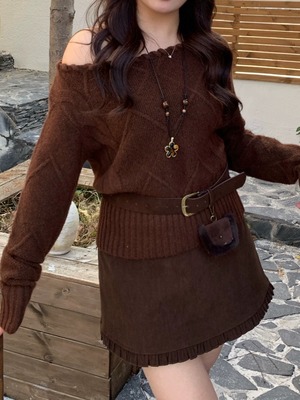 さりげない色気は首元でつくる ロープデザインオフショルニット 秋冬 おしゃれ 大人可愛い カジュアル 甘辛 おでかけ デート体型カバー 大きいサイズ 韓国 CH11377