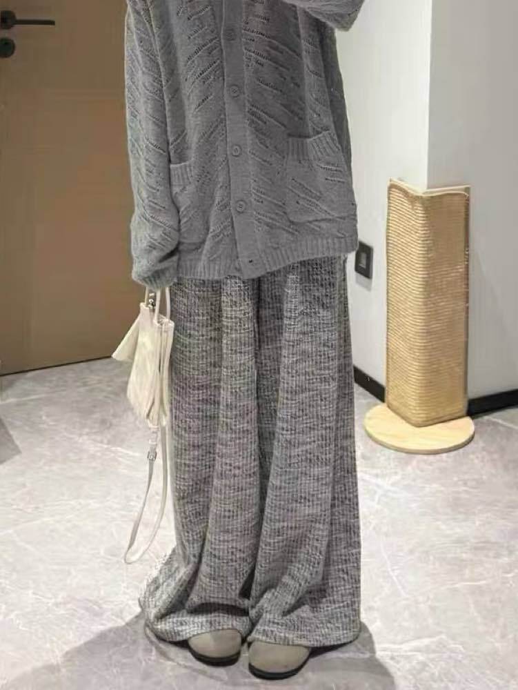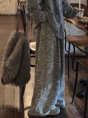 リラックス感までコーデになる♪ ミックスカラーニットパンツ おしゃれ 大人 クール カジュアル ワンマイル 脚長 細見え 大きいサイズ 韓国 CH11341