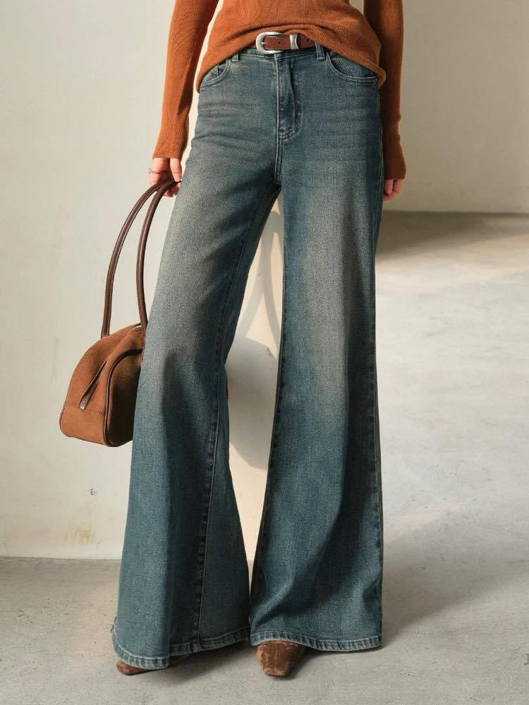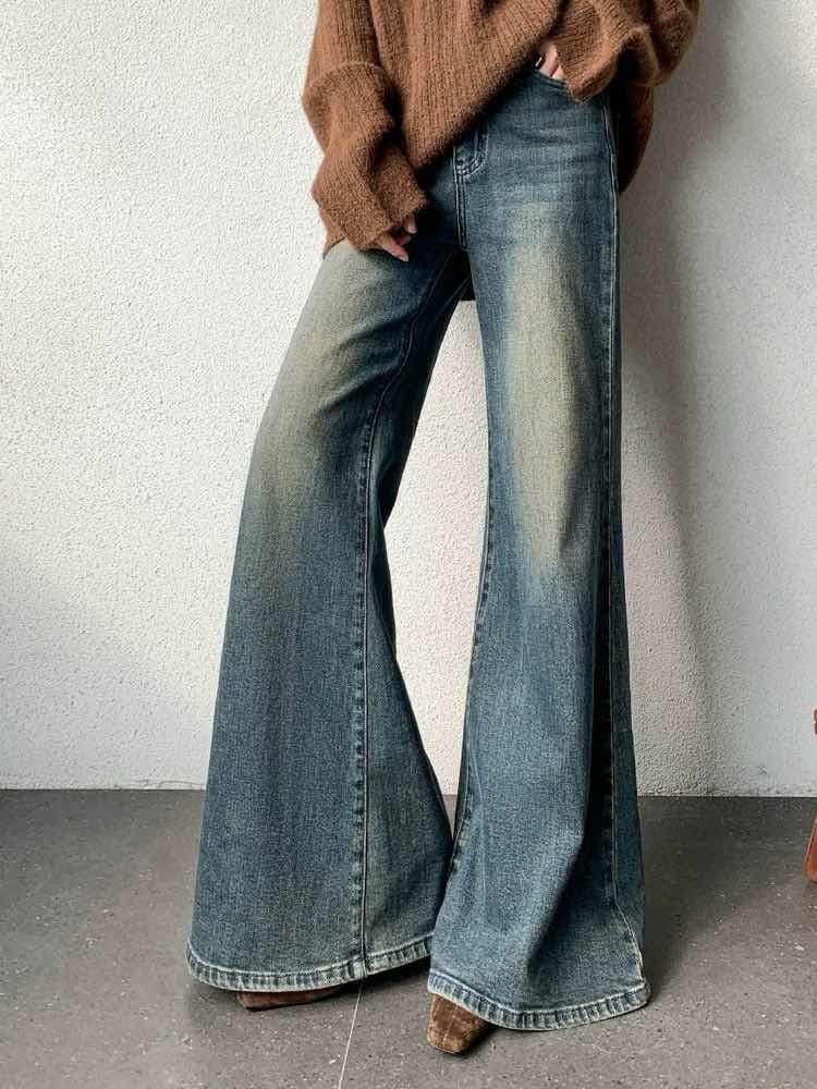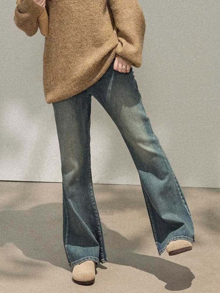 履いた瞬間、脚長スイッチON♡ ヴィンテージフレアデニムパンツ 大人 おしゃれ カジュアル こなれ感 美脚 脚長 美シルエット 体型カバー 大きいサイズ 韓国 CH11346