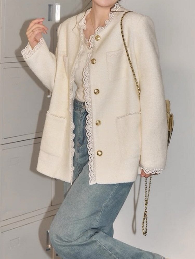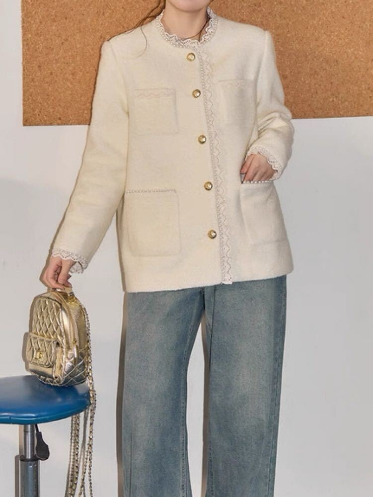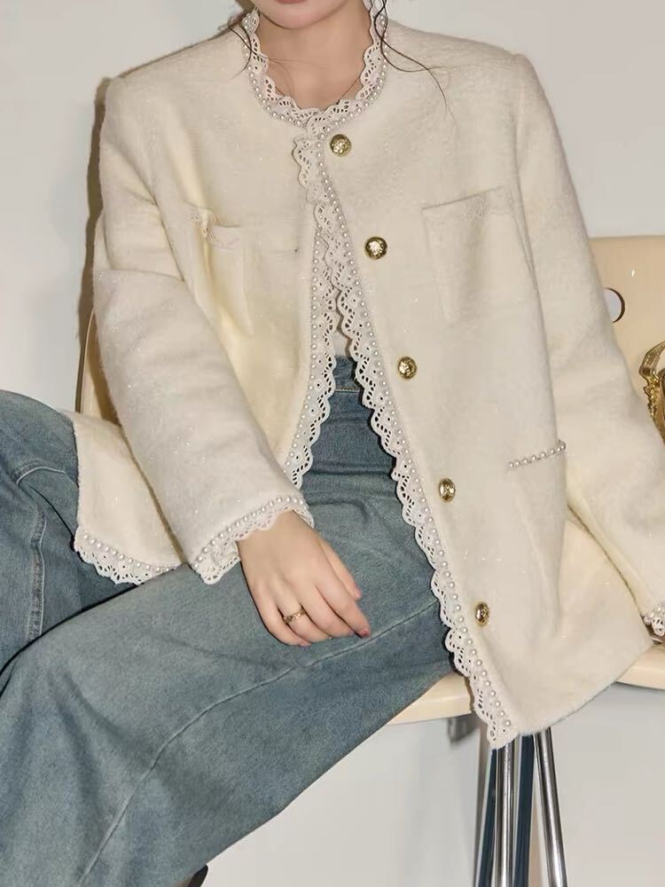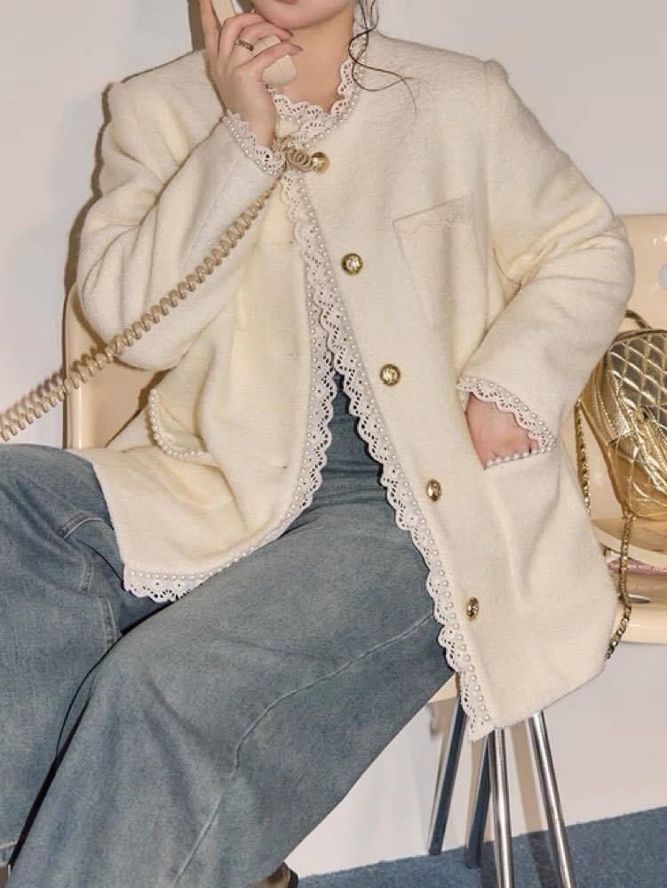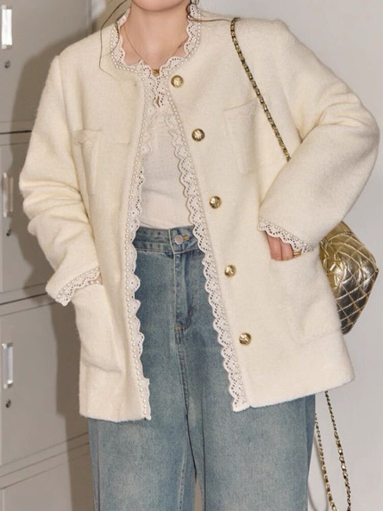 繊細なレース×上品なパールが目を惹く、きれいめデザインのジャケット♡