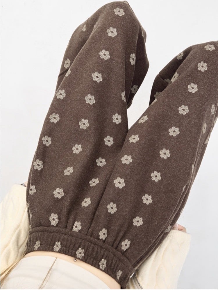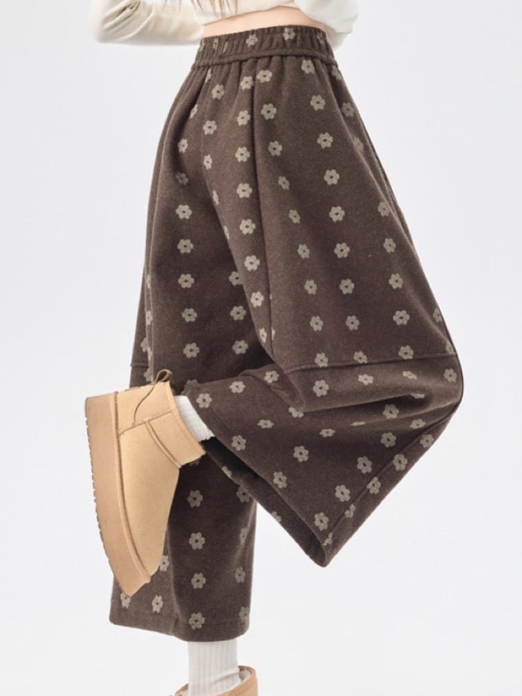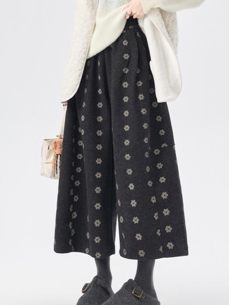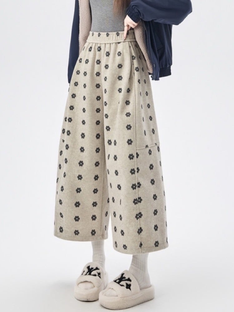 やさしい雰囲気の小花柄が印象的な、ナチュラルテイストのワイドパンツ。