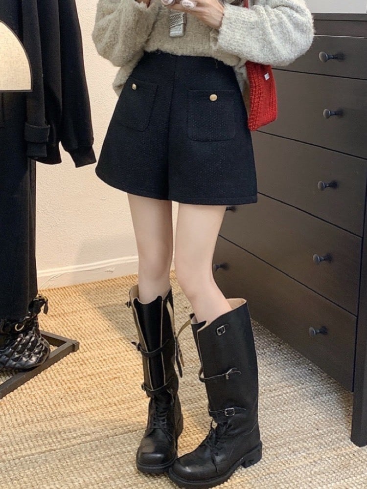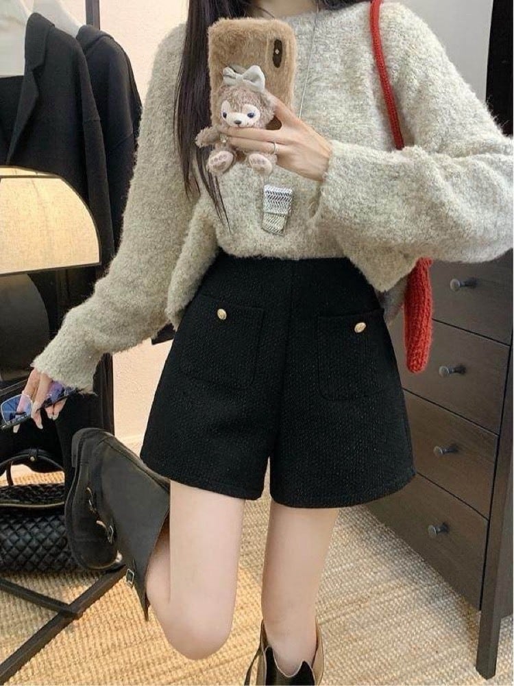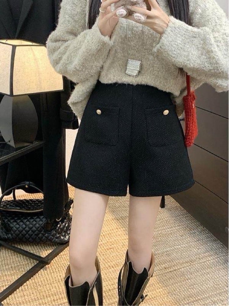 甘すぎない可愛さ ツイード風ショートパンツ 大人 おしゃれ カジュアル こなれ感 美脚 脚長 美シルエット 体型カバー 大きいサイズ 韓国 CH11432