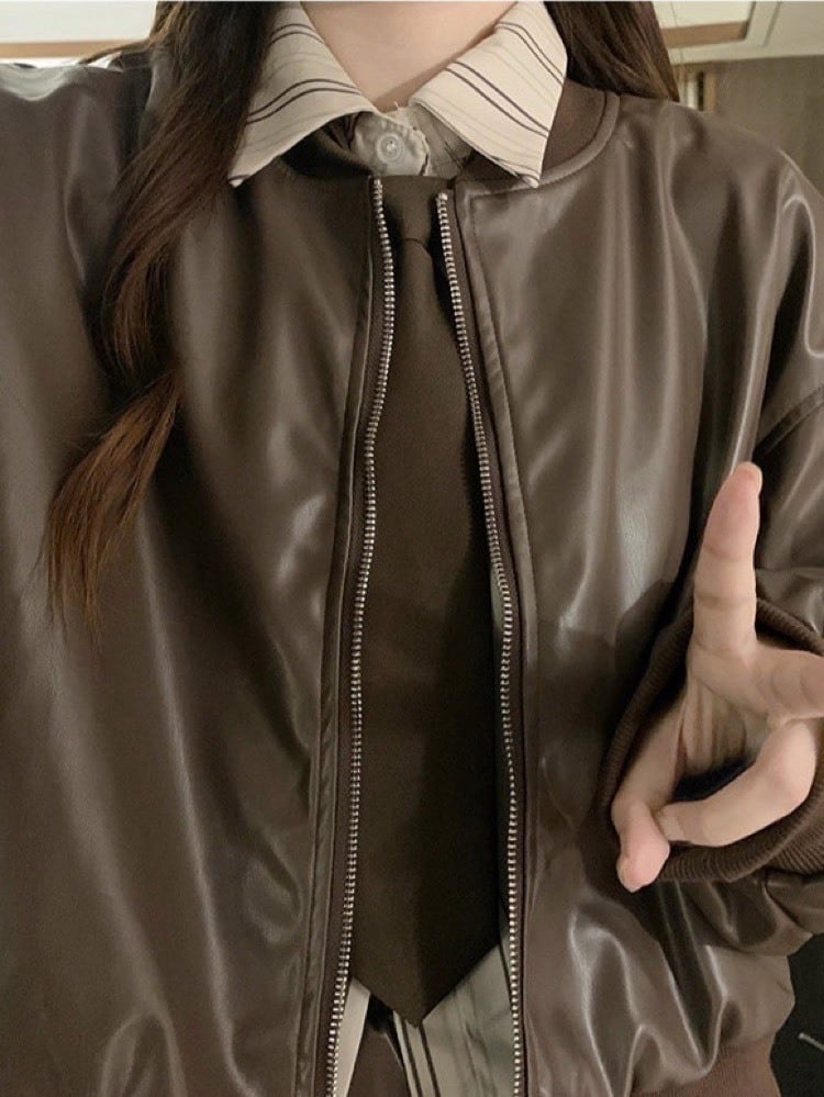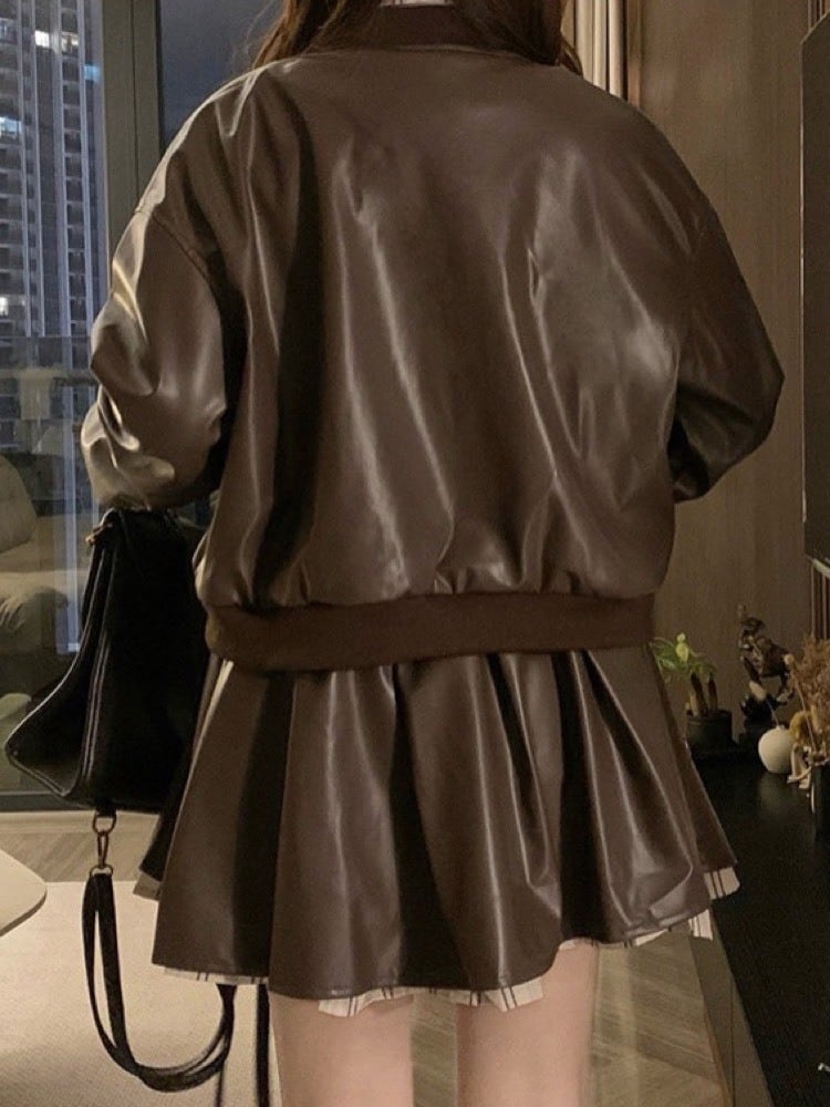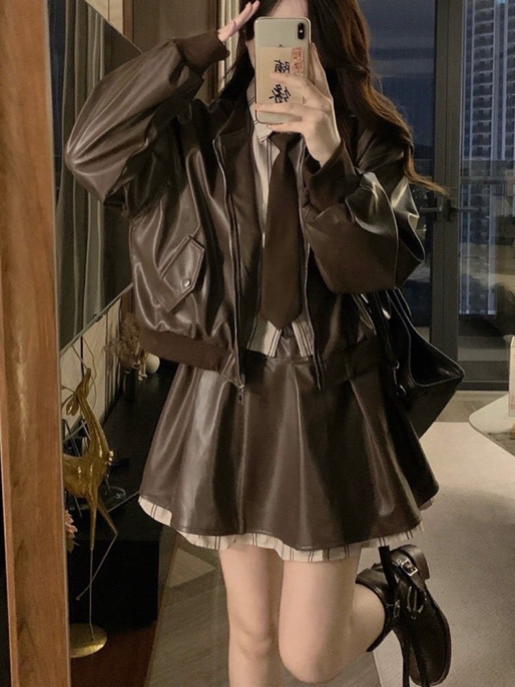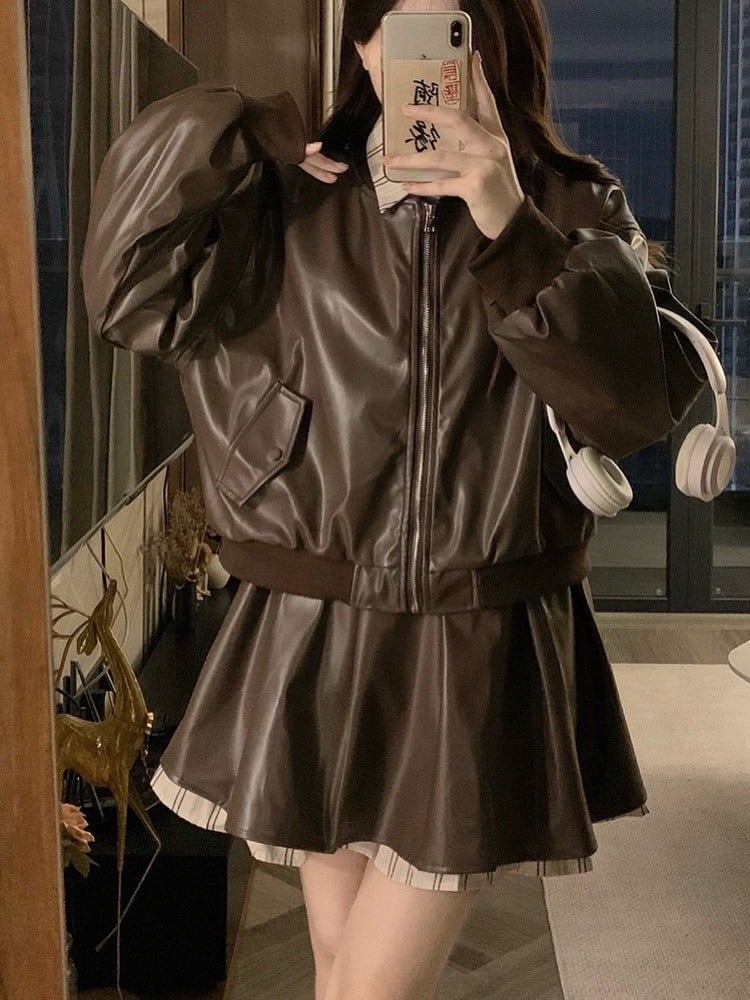 甘さを削ぎ落とした レザー調セットアップ 大人可愛い お洒落 体型カバー 冬 コーデ セット 大きいサイズ 韓国 CH11436