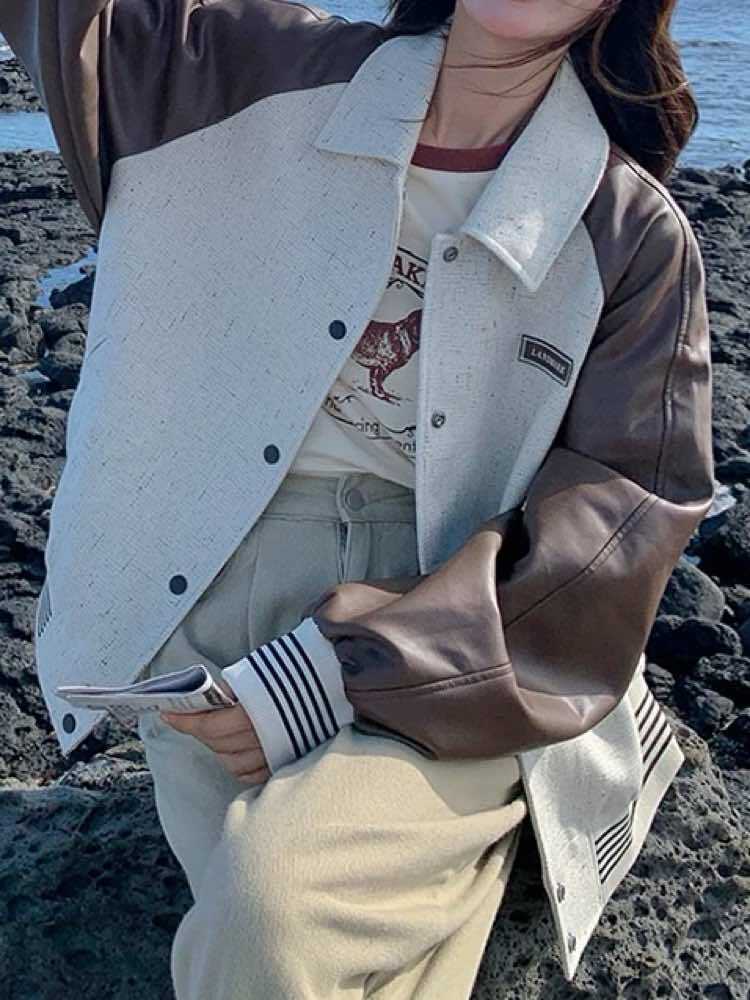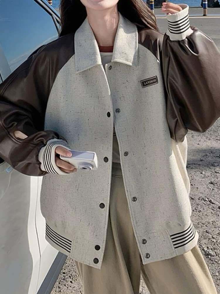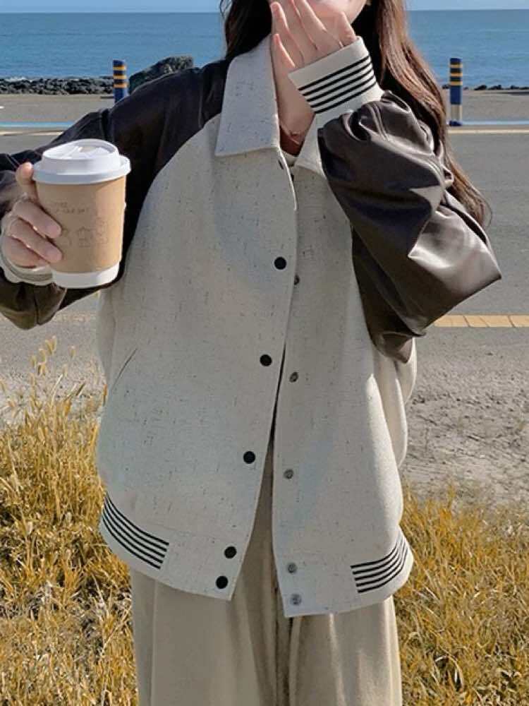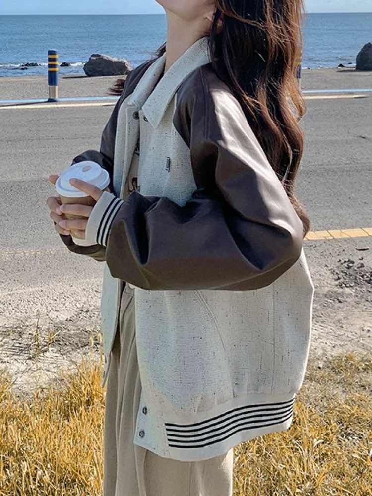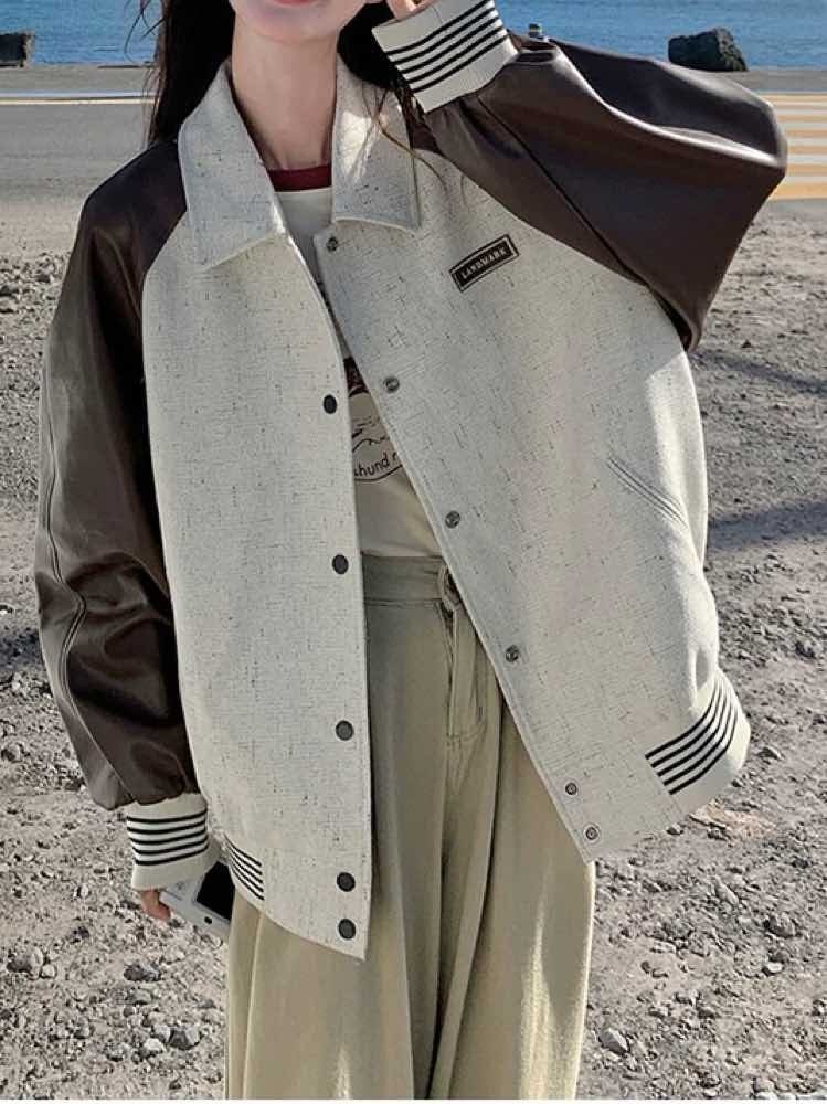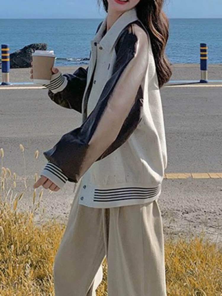 さり気ないアクセントでこなれ度UP バイカラーナチュラルブルゾン おしゃれ バイカラー 配色 ロゴ ボーダー カジュアル リラクシー デイリー 着痩せ 体型カバー 大きいサイズ 韓国 CH11402