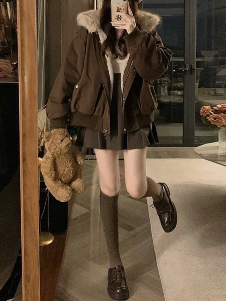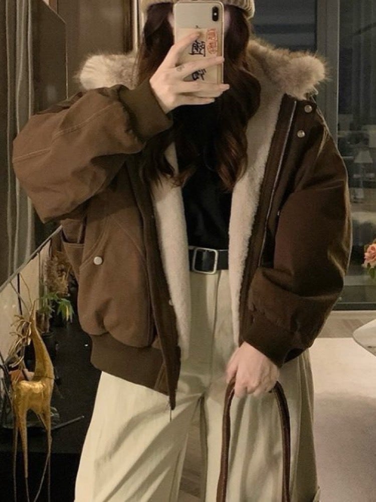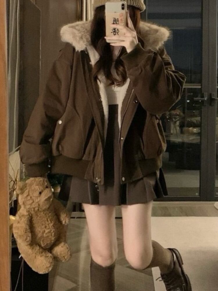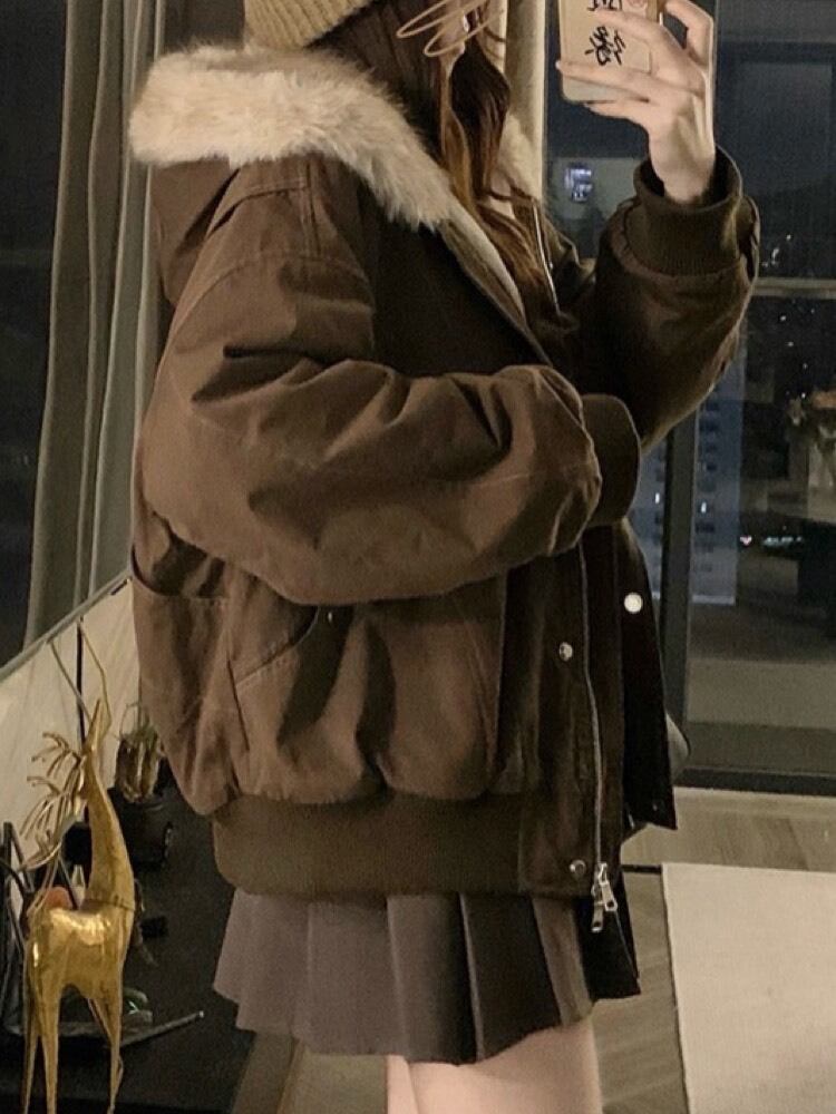 包まれるあたたかさ ファー付きジャケット 大人可愛い おしゃれ トレンド デート 体型カバー 大きいサイズ 韓国 CH11445