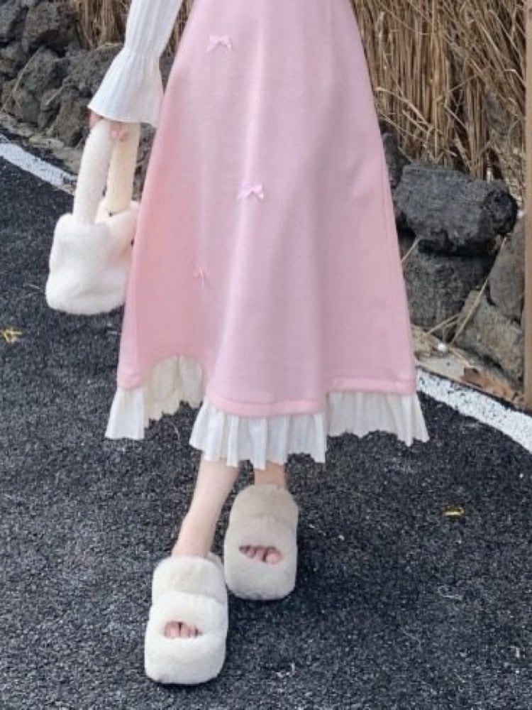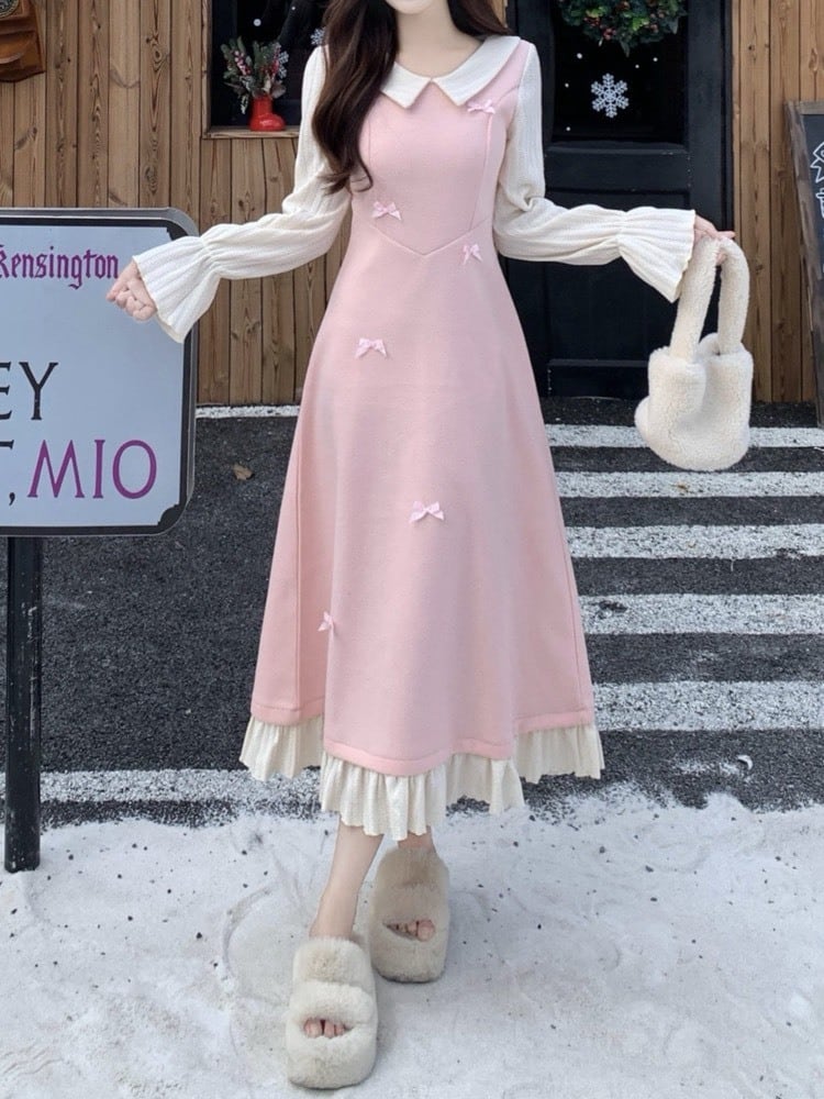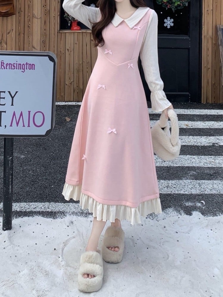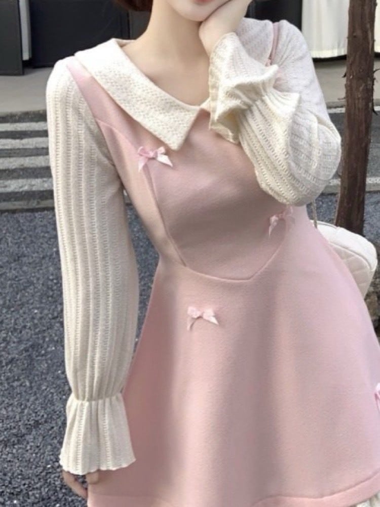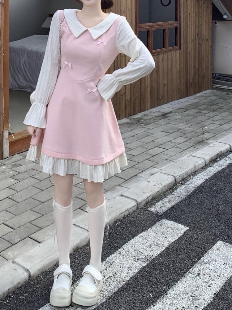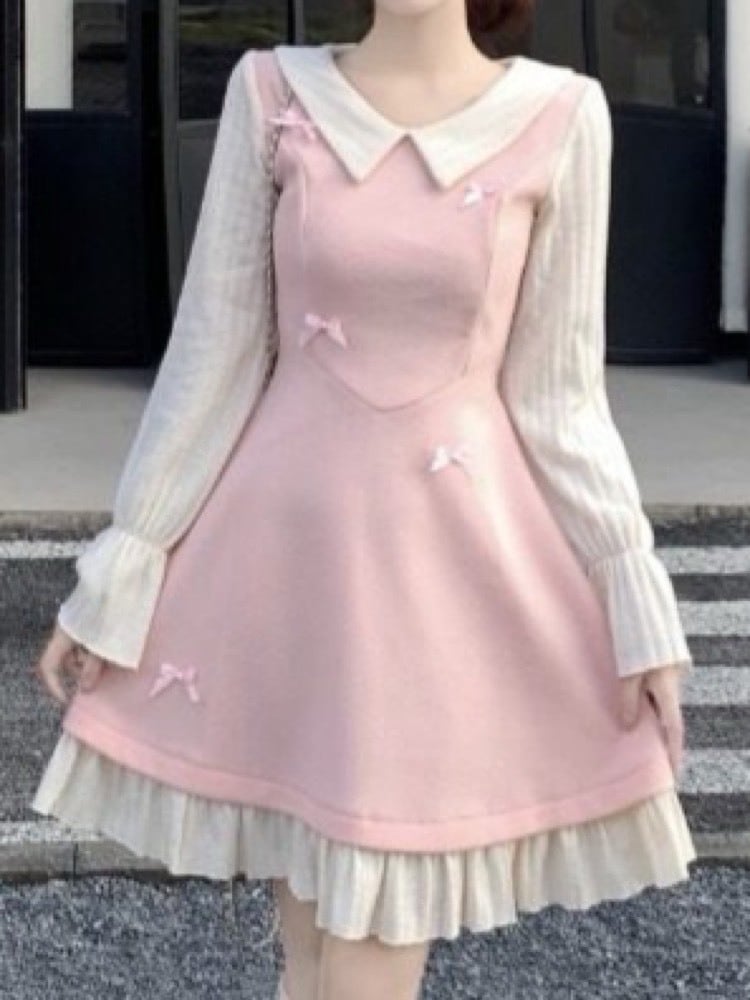 甘さは控えめ可愛さはしっかり丈が選べる レイヤード風リボンワンピース 大人かわいい ガーリー おしゃれ 上品 デート おでかけ 体型カバー 大きいサイズ 韓国 CH11447
