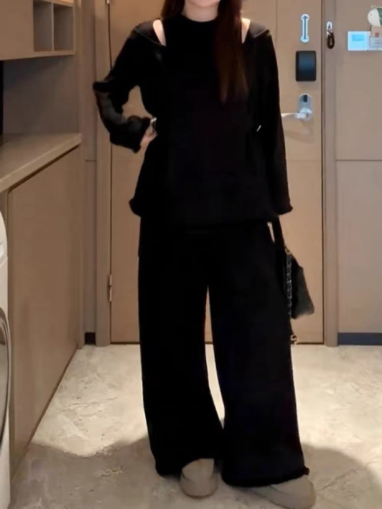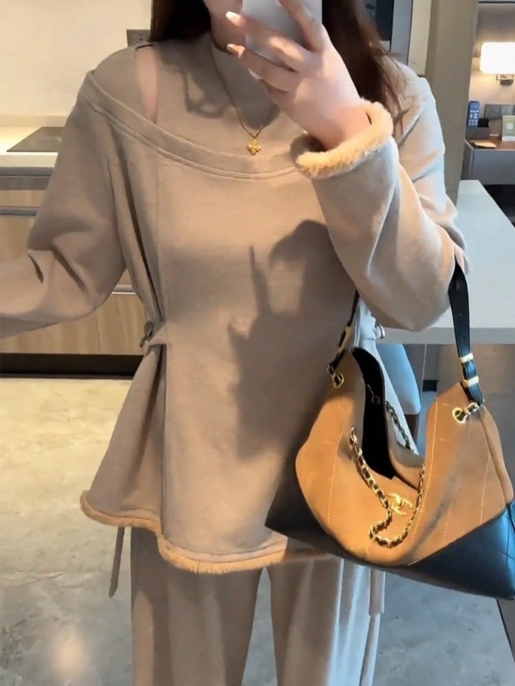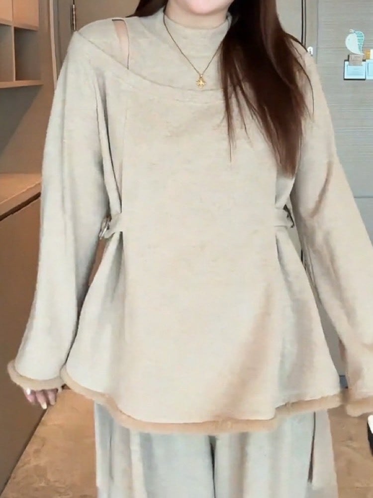 内側にハイネック、外側に柔らかなニットを重ねたような