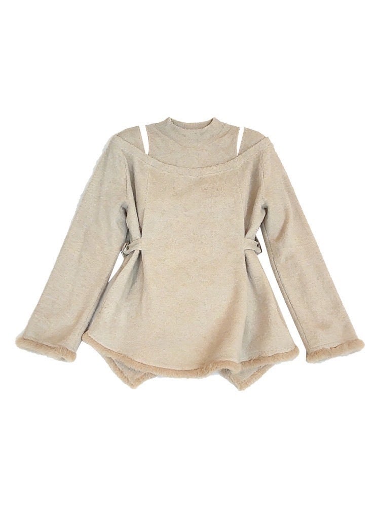 さりげなく可愛い計 レイヤード風ファー付きニット ウエストリボン おしゃれ 大人可愛い カジュアル 細見え 体型カバー 大きいサイズ 韓国 CH11446
