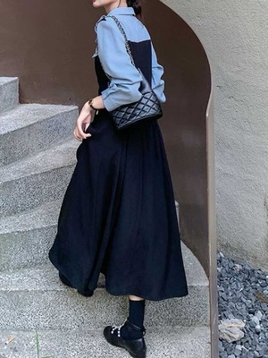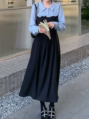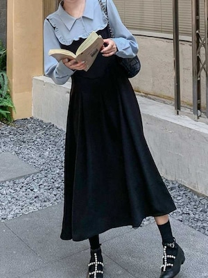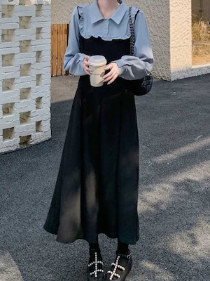 1枚でコーデ完成♡ブラウスを重ねたみたいなレイヤード風デザインが可愛い、ジャンスカ風ワンピースです。