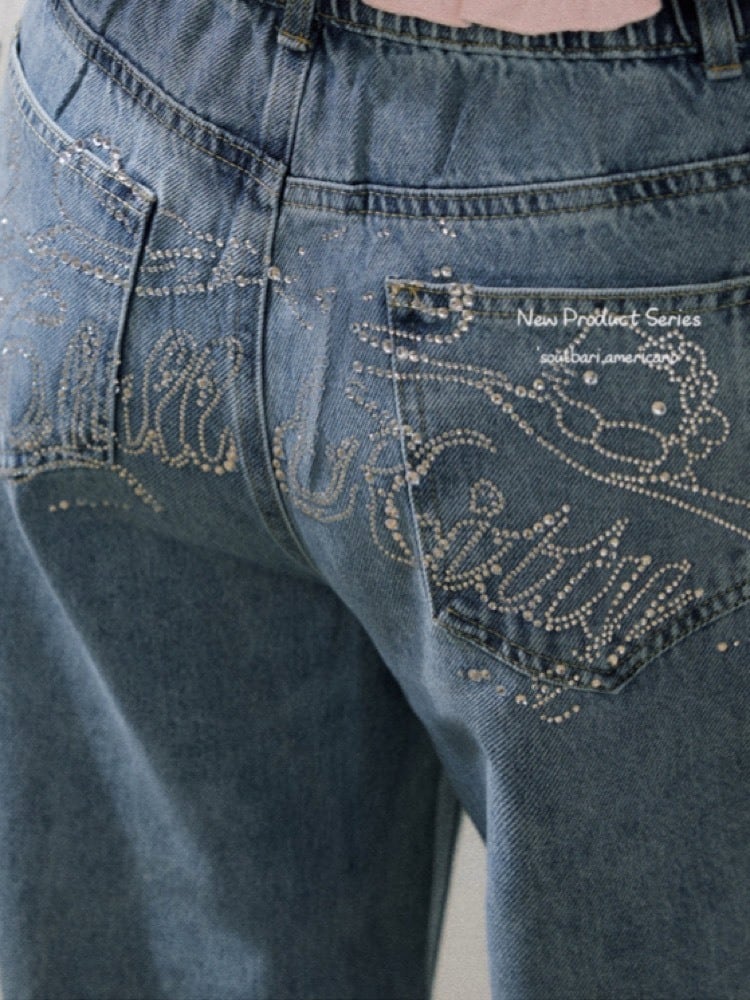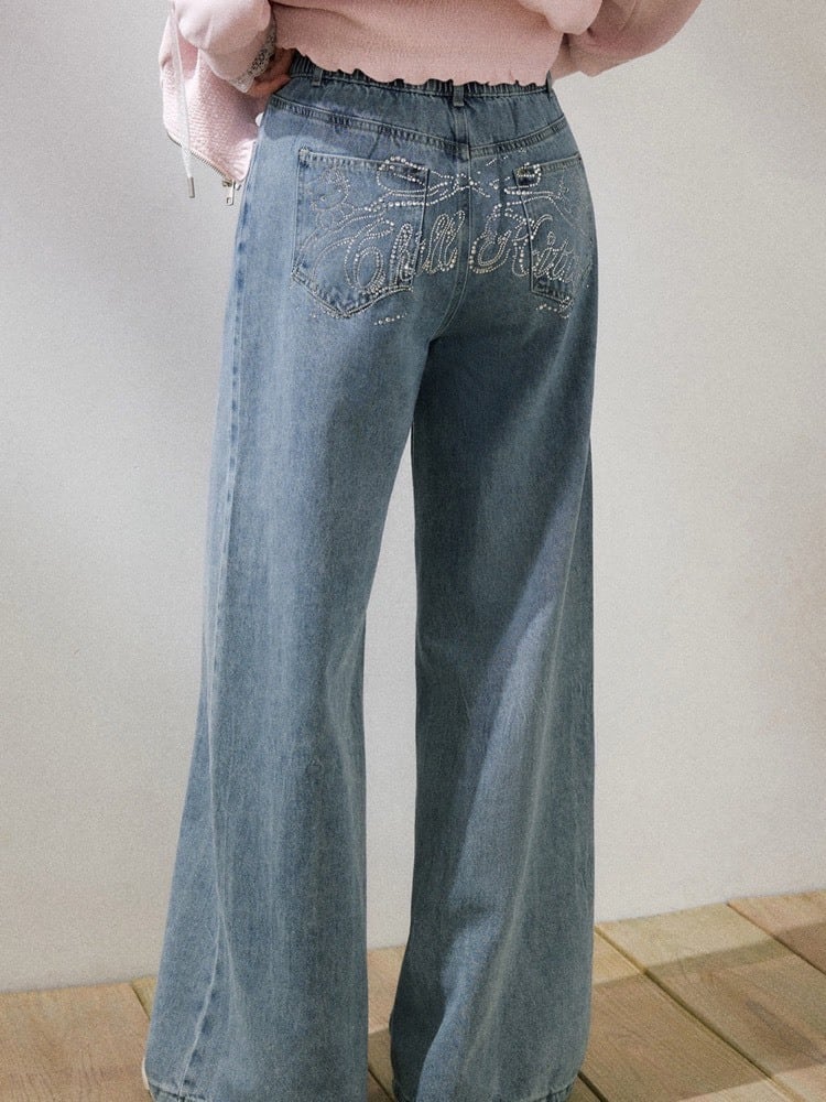 バックポケットに施されたラインストーンデザインが目を惹く、主役級デニムパンツ。