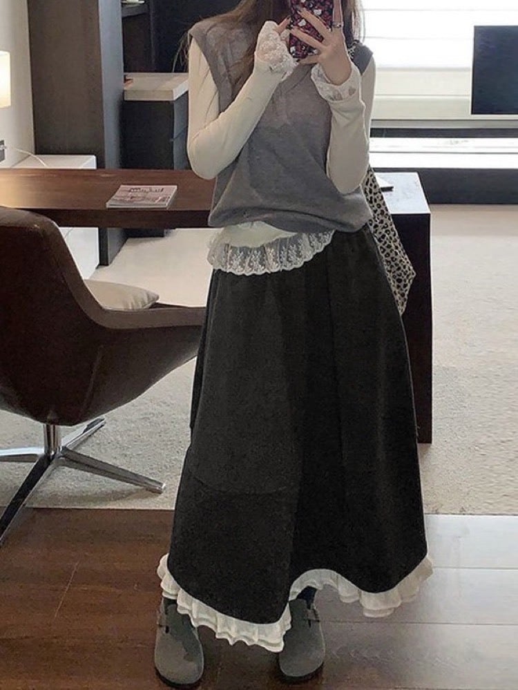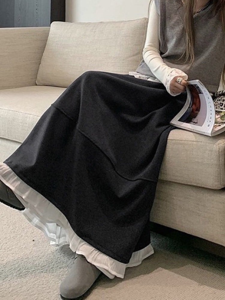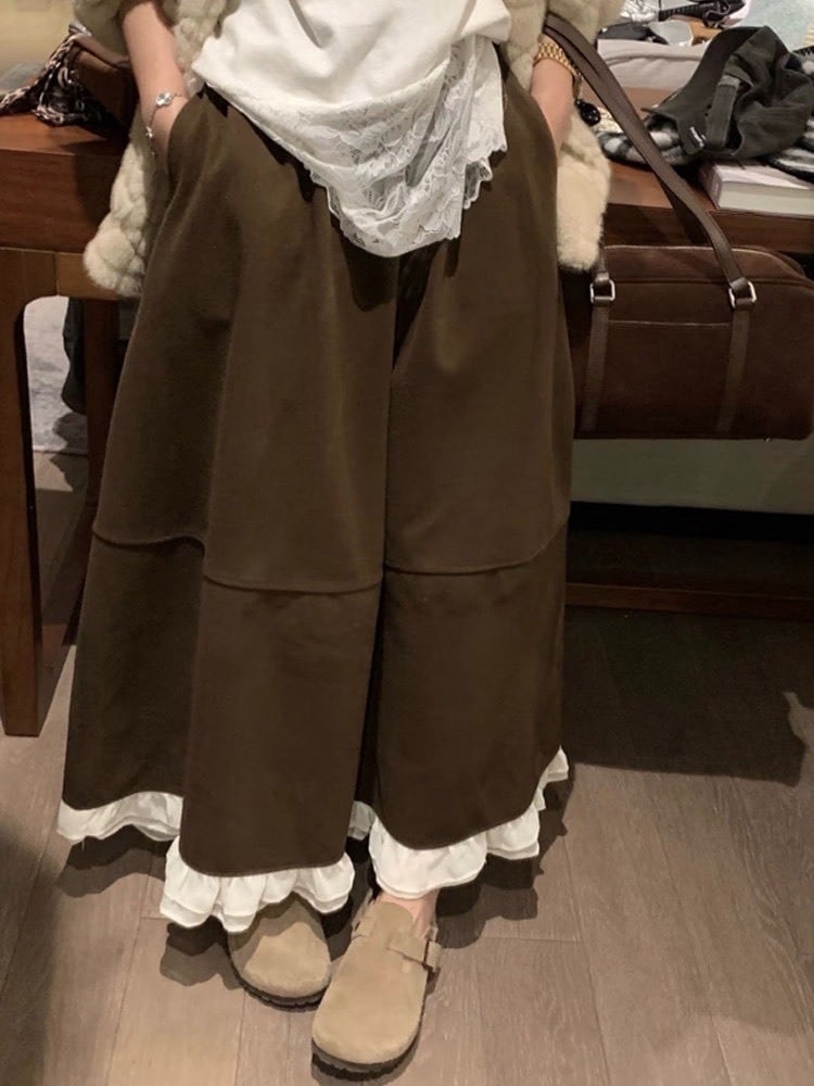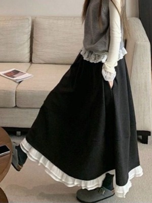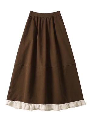 裾フリルデザインのロングスカート。