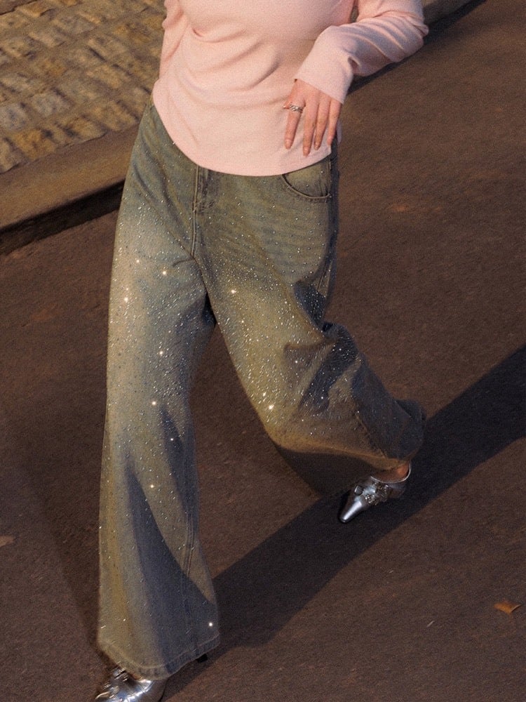 細かなきらめきが全体に散りばめられた、存在感抜群のグリッターデニム。