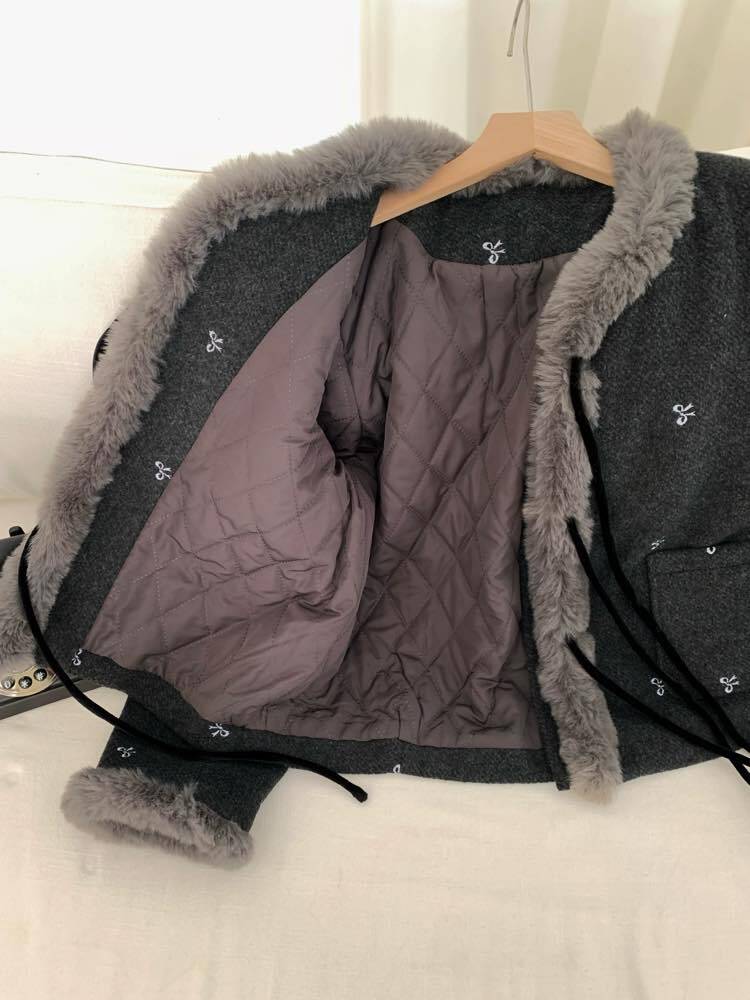 襟元と袖口にあしらったファーが、季節感たっぷりで上品かわいい印象に仕上げてくれます。