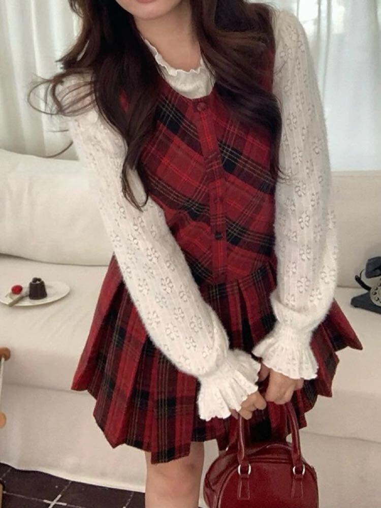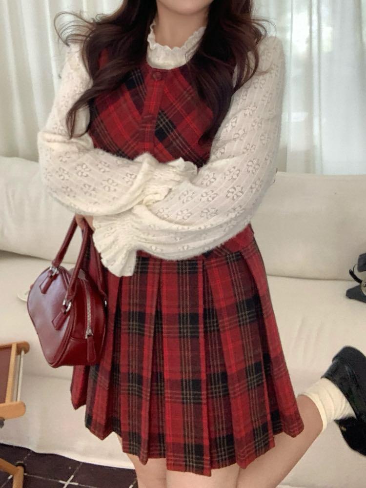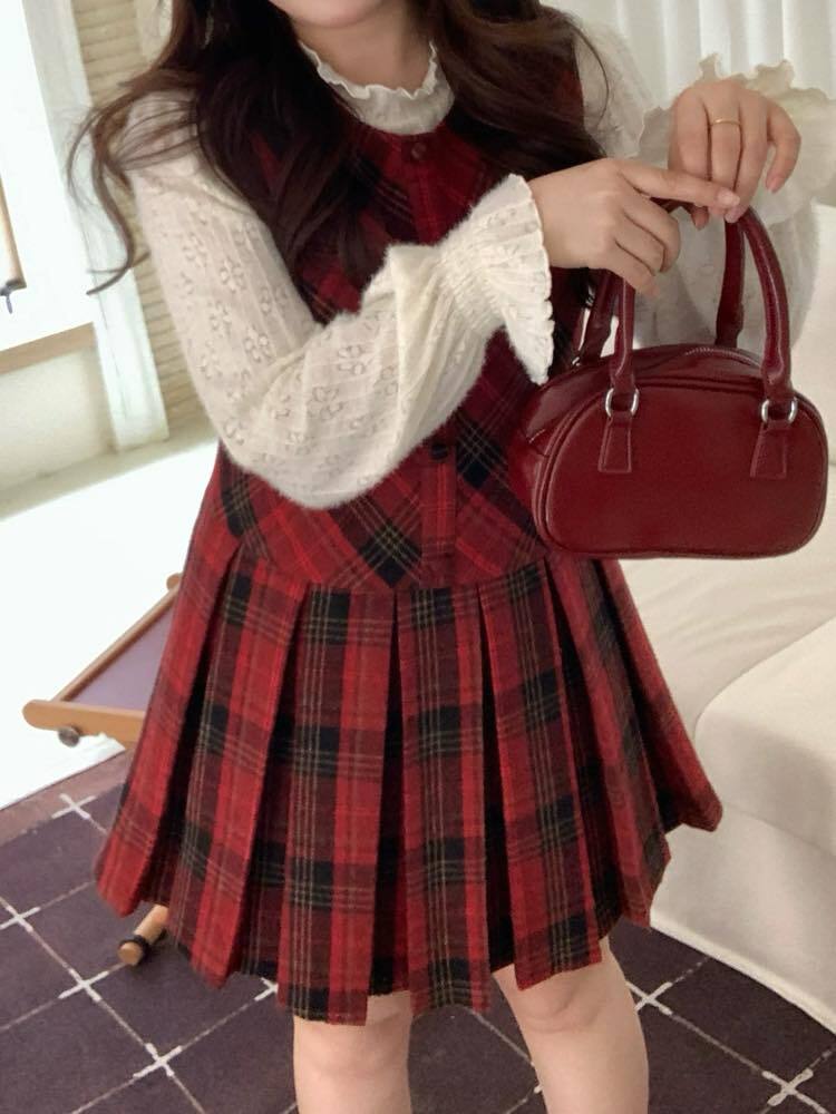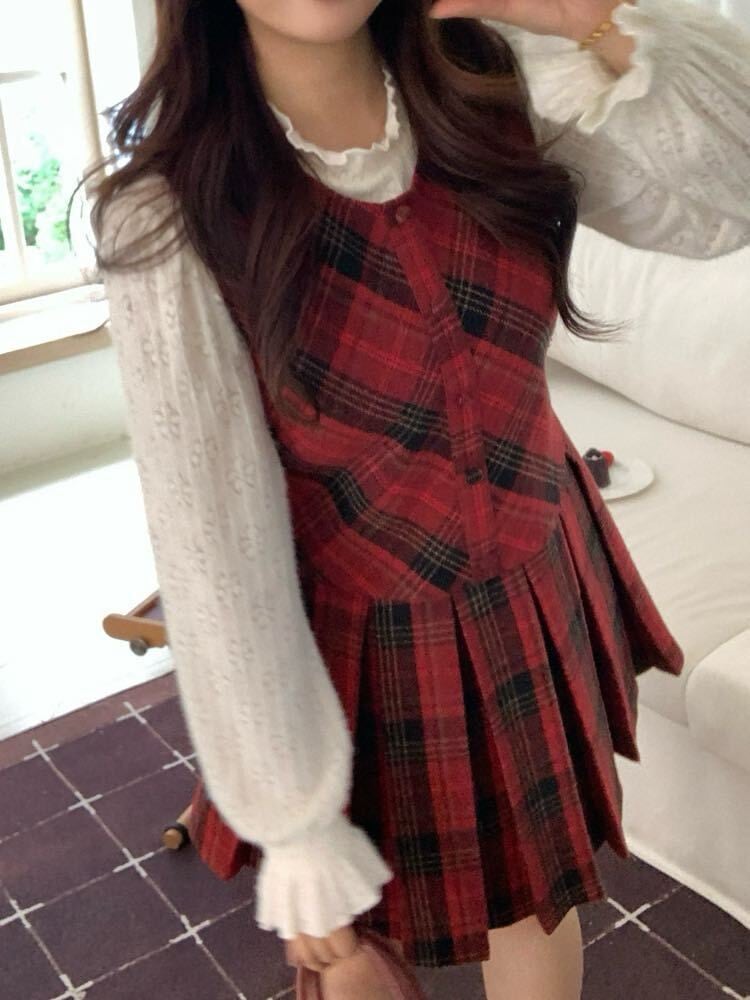 揺れるプリーツ×ときめくチェック♡ ミニ丈チェック柄ジャンパースカート 大人可愛い 上品 チェック柄 おしゃれ 着映え プリーツ 着回し デート おでかけ 体型カバー 大きいサイズ 韓国 CH11412