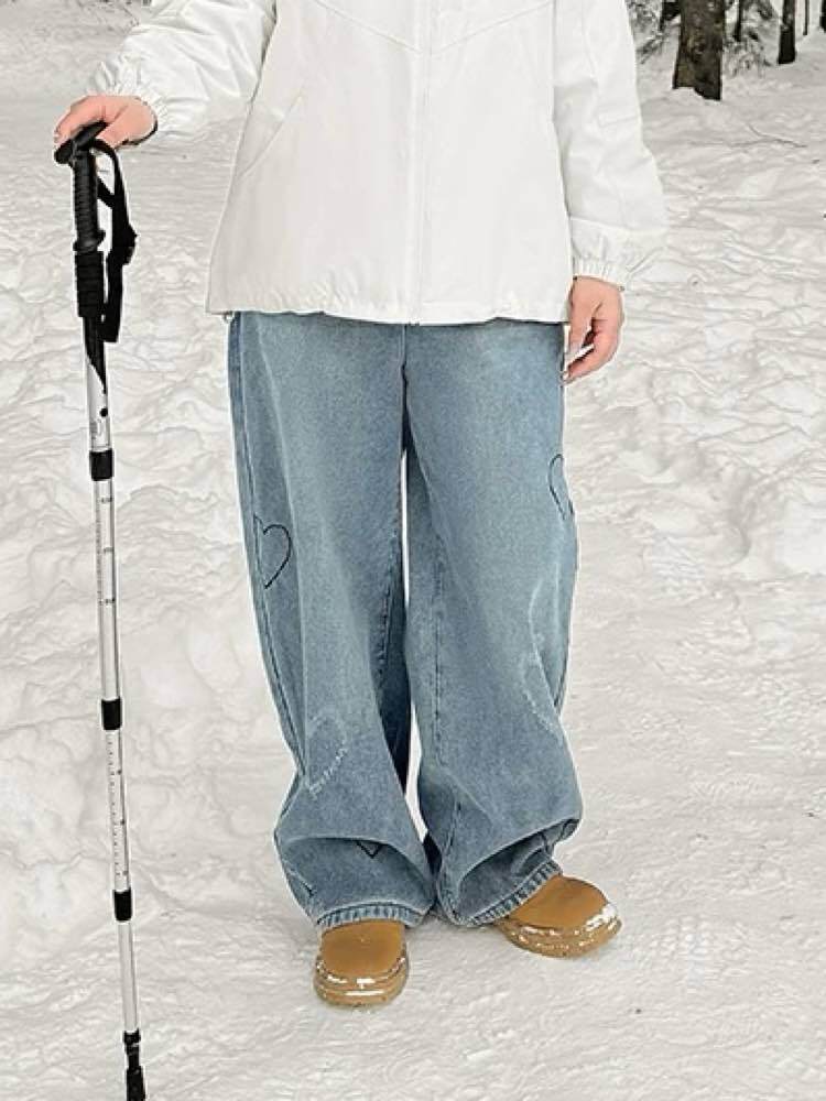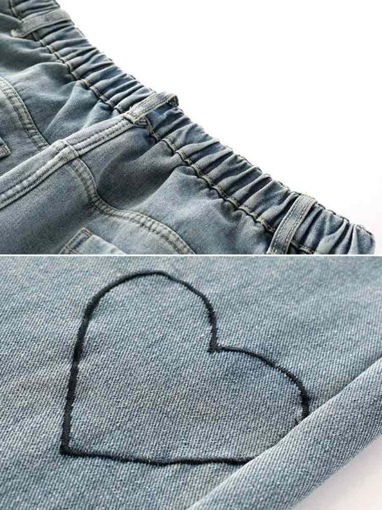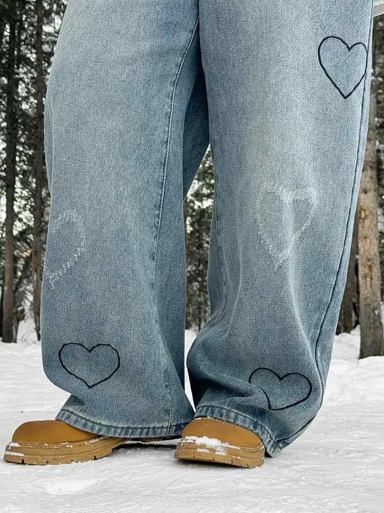 こなれ感も可愛さもゆずれない ハート柄ストレートデニムパンツ 大人可愛い ラフ カジュアル ハート おしゃれ カジュアル リラクシー デイリー 着痩せ 細見え 大きいサイズ 韓国 CH11413