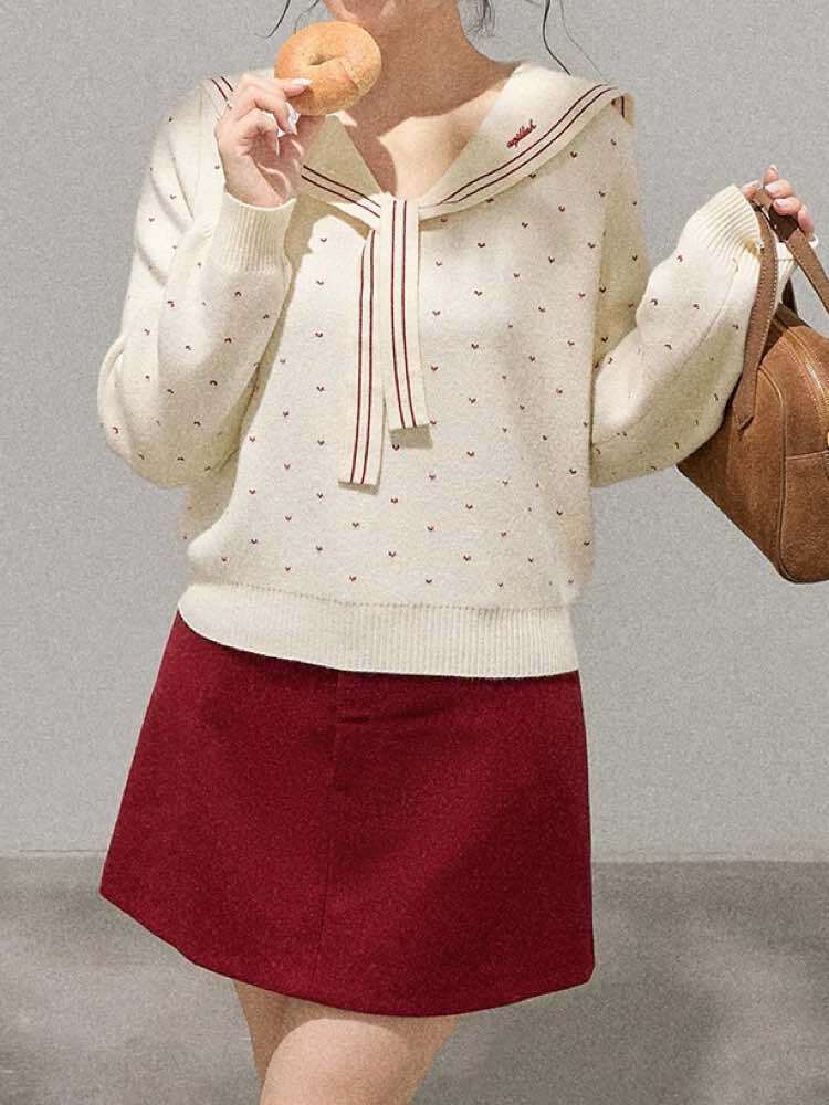 散りばめられた小さなハート柄ときめく♡主役級なニットトップスです。