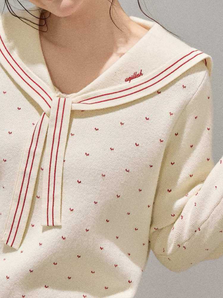 目を惹くマリンカラーのセーラー襟には、さりげなくアクセントになる刺繍が施されていて、どこから見てもかわいいが詰まった一着!