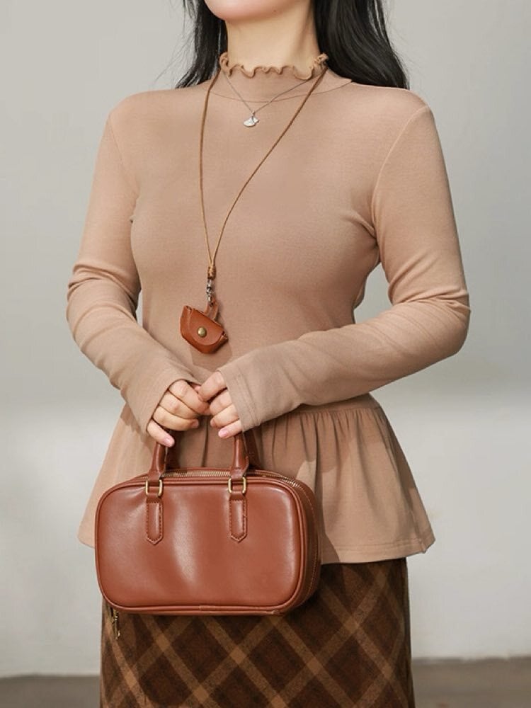 首元のメロウデザインは顔周りを華やかに見せてくれるので、カーディガンやジャンスカ、カジュアルかトレーナーとの重ね着スタイルもおすすめ♪