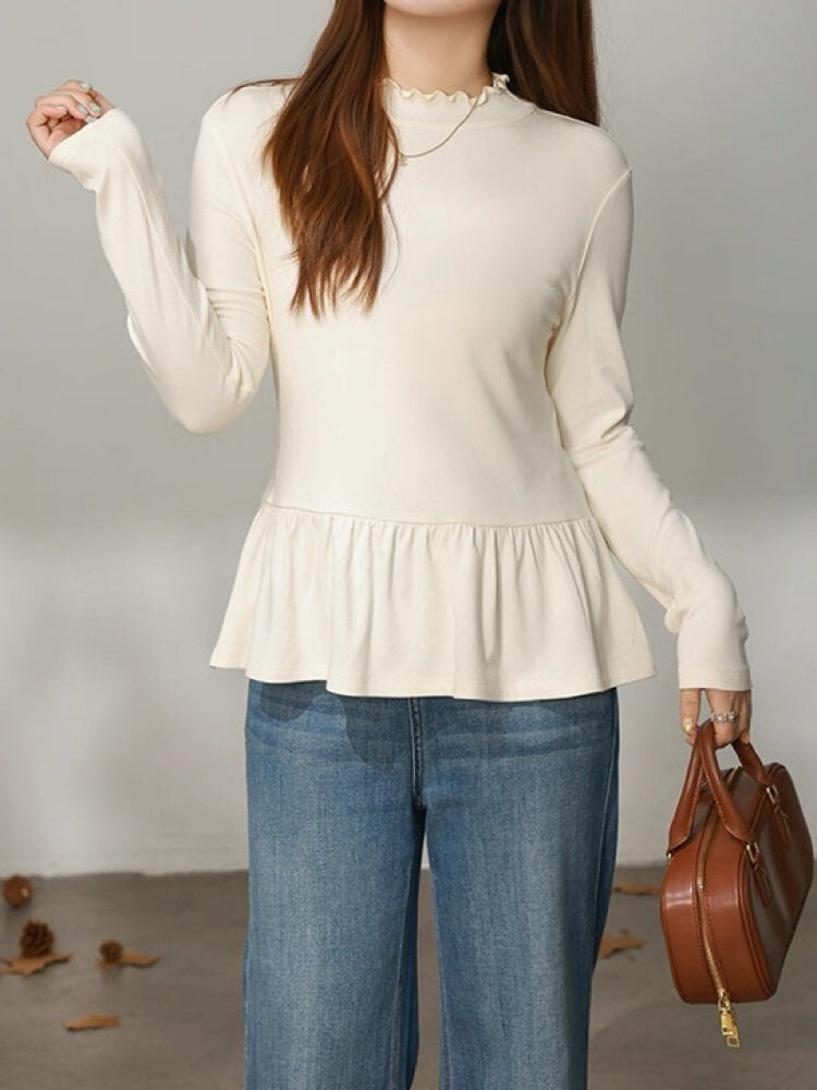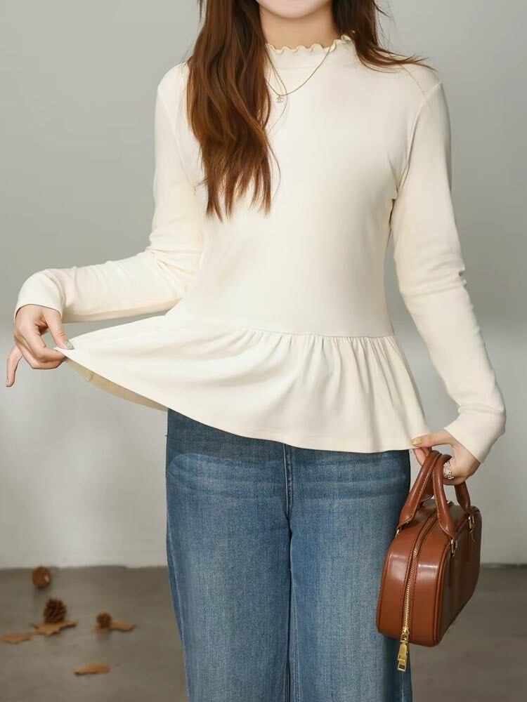 着回し自在な優秀トップス メロウネックペプラムトップス おしゃれ 大人可愛い フリル カジュアル きれいめ 上品 レイヤード 着回し 体型カバー 大きいサイズ 韓国 CH11421
