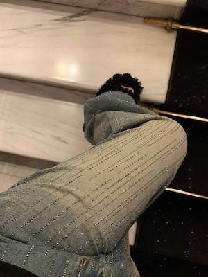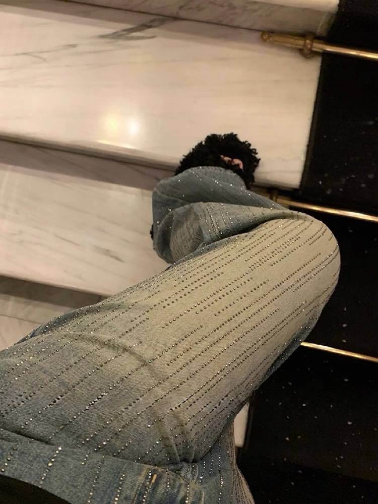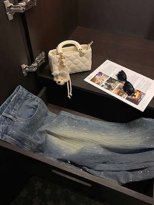 歩くたびに煌めくビジューを散りばめた、遊び心たっぷりなキラキラデニム♡