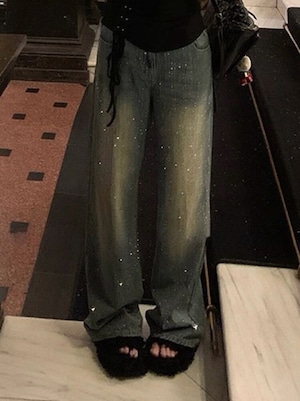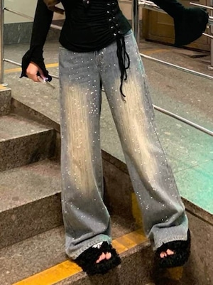 "ビジューデニムパンツ"