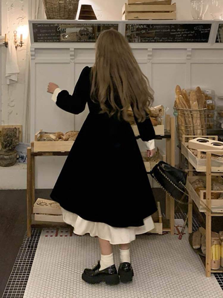 袖口と襟元の配色がパッと目を惹く、クラシカルな魅力たっぷりのバイカラーワンピースです♡