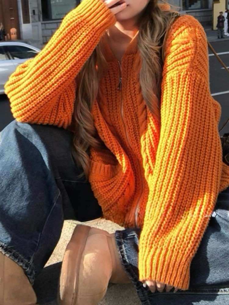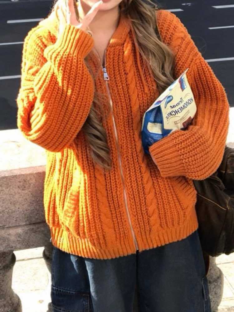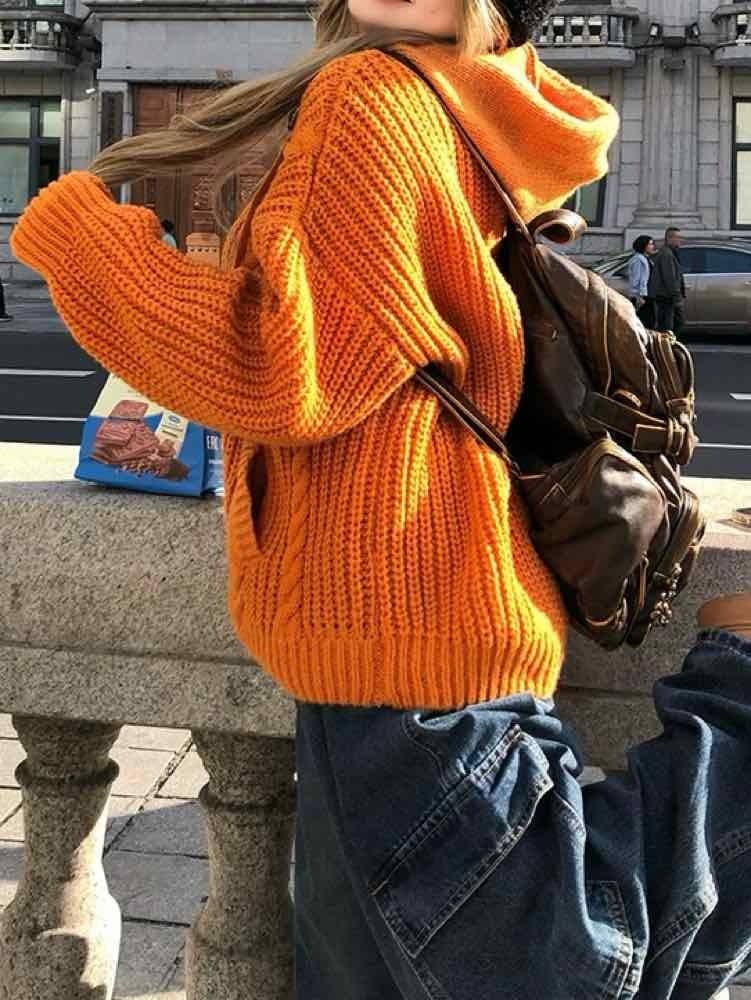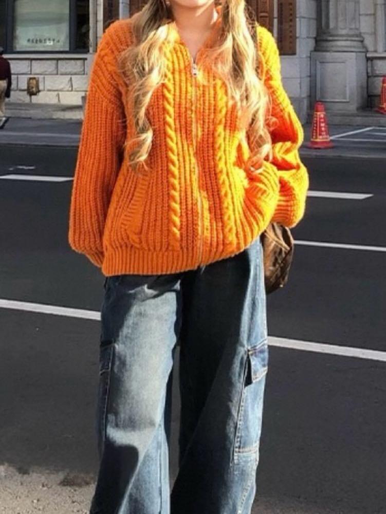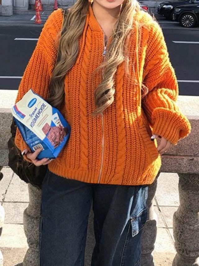 着映え度満点な差し色アイテム ローゲージフードニットパーカー 大人可愛い おしゃれ ジップアップ 差し色 カジュアル リラクシー 着回し こなれ感 体型カバー 大きいサイズ 韓国 CH11497