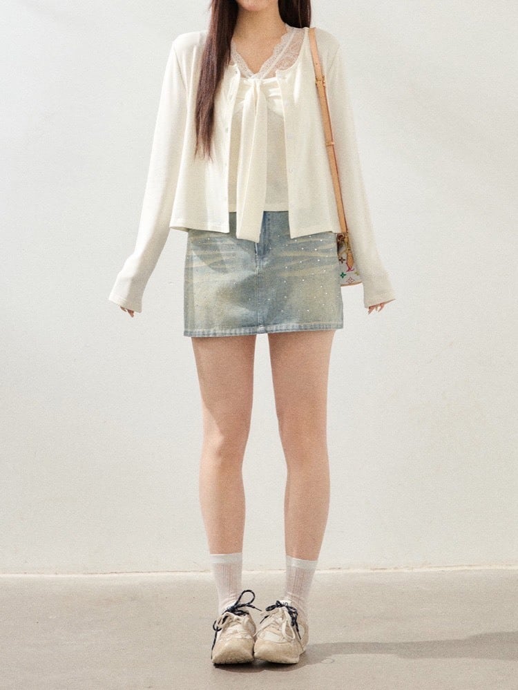 重ねるだけで可愛いが完成 カーディガン×レースキャミセット 大人可愛い おしゃれ トレンド きれいめ こなれ感 体型カバー 大きいサイズ 韓国 CH11466