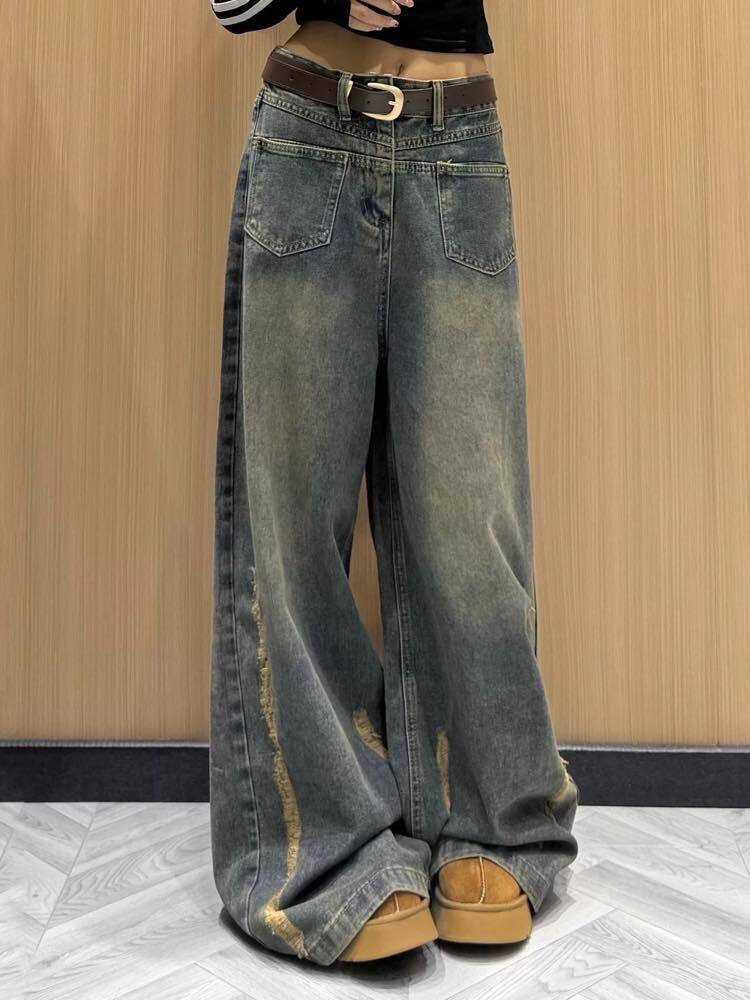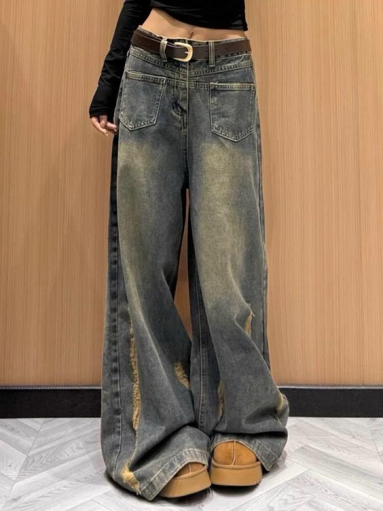 ゆるっと今っぽで差がつく サイドオープンワイドデニム お洒落 こなれ感 カジュアル Y2K ラフ 美脚 脚長 細見え 大きいサイズ 韓国 CH11539