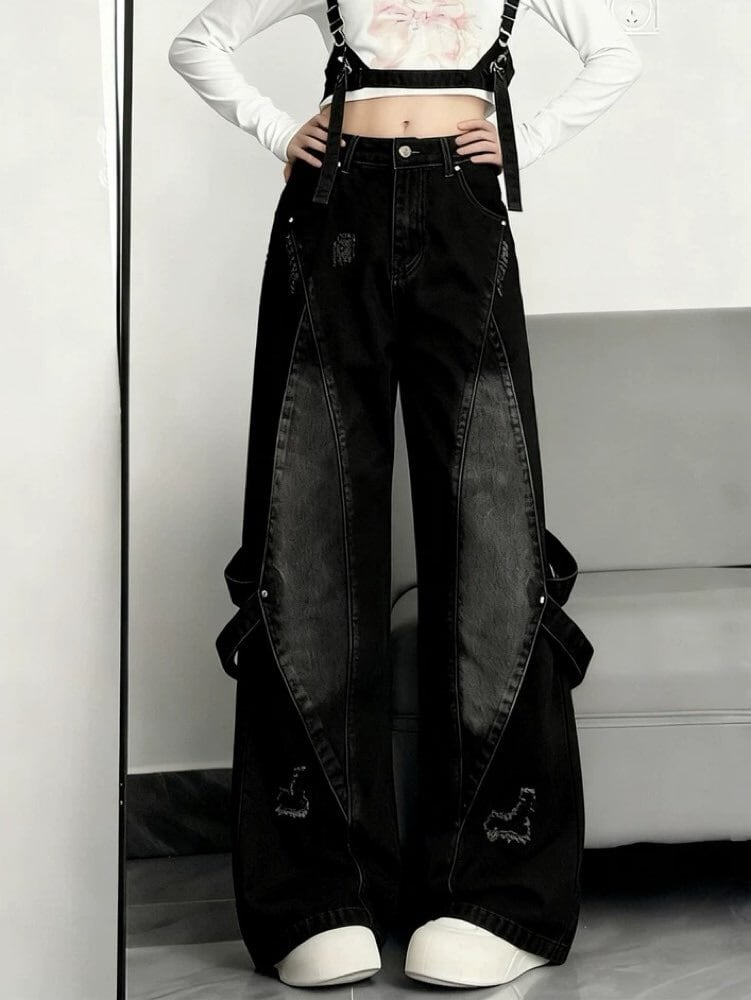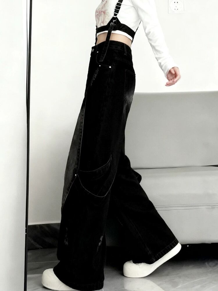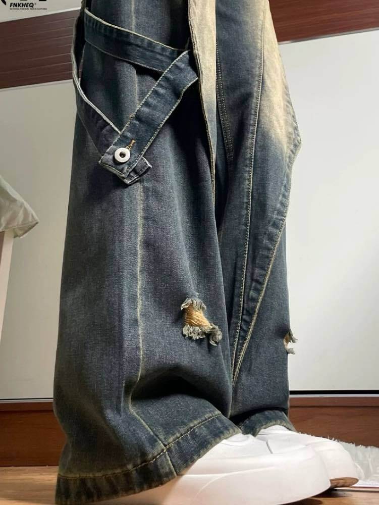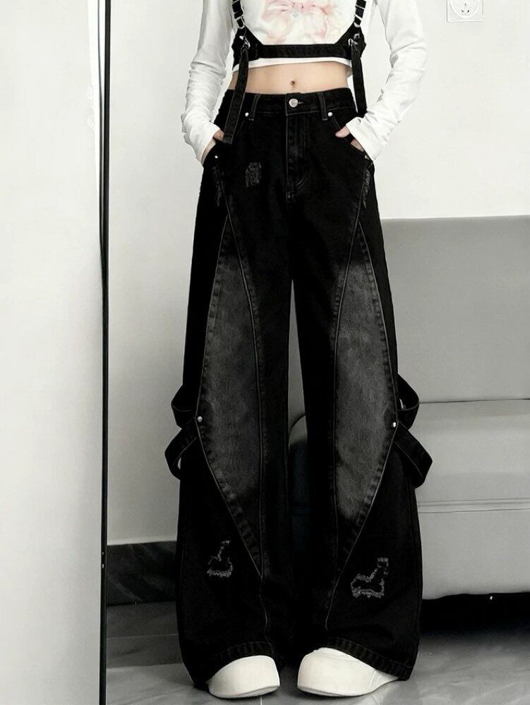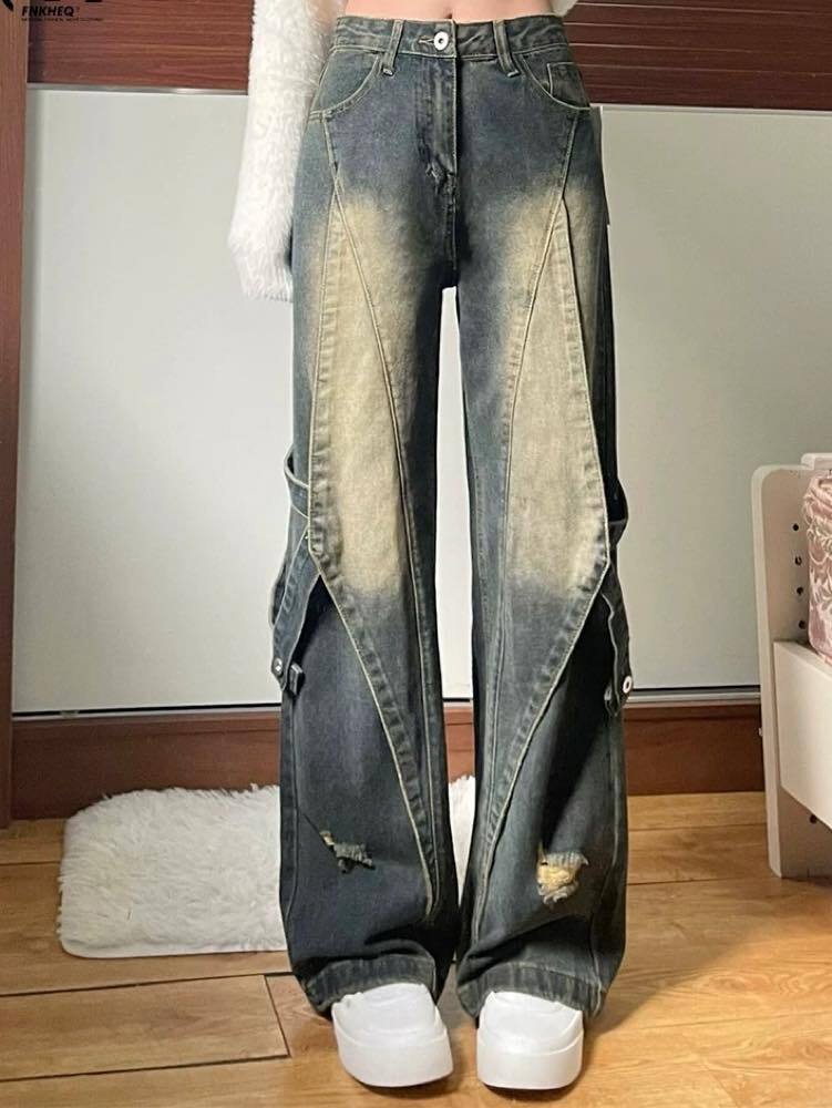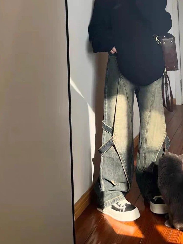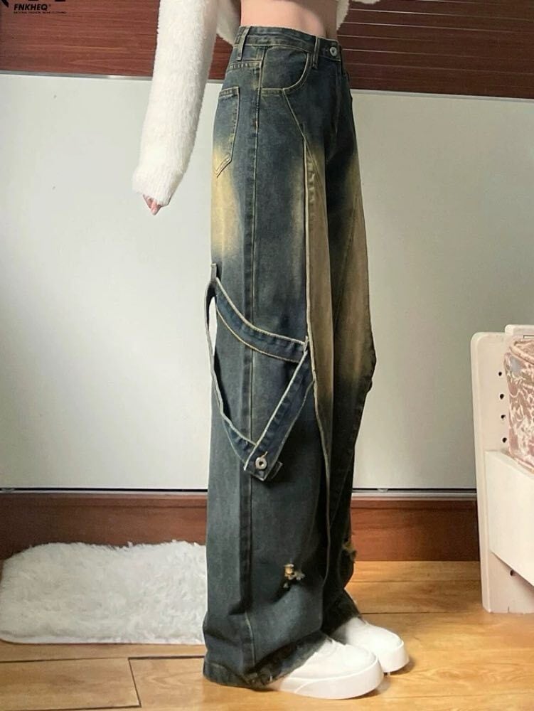 雰囲気で魅せる最旬ストリート グランジデザインダメージデニム お洒落 こなれ感 大人 カジュアル Y2K 脚長 美脚 大きいサイズ 韓国 CH11540