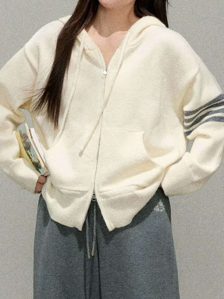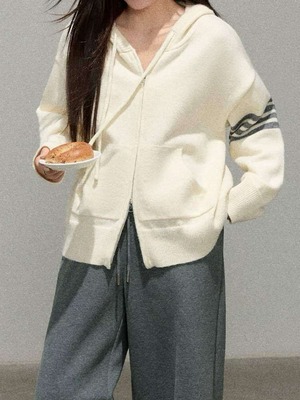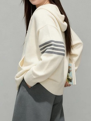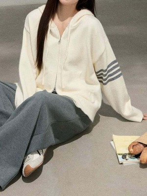 デイリーからおでかけまで活躍 ラインデザインダブルジップパーカー 大人可愛い お洒落 ダブルジップ ライン フード カジュアル ルームウェア 体型カバー 大きいサイズ 韓国 CH11545
