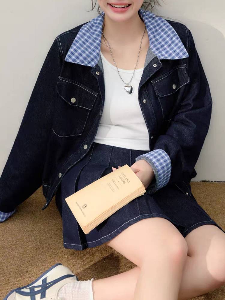 定番デニムにちょっとだけ“ときめき”を ギンガム切替デニムジャケット 大人可愛い お洒落 着映え カジュアル 細見え 大きいサイズ 韓国 CH11560