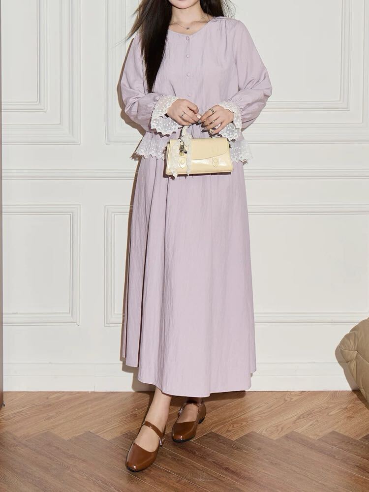 袖口やウエストにあしらわれたレースはシンプルな中にキュートなアクセントをプラス◎