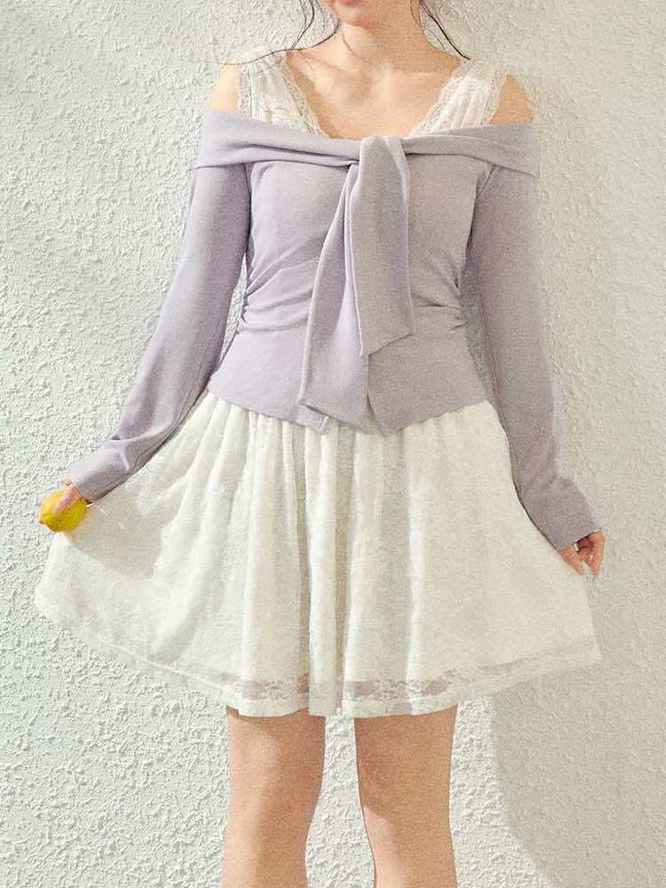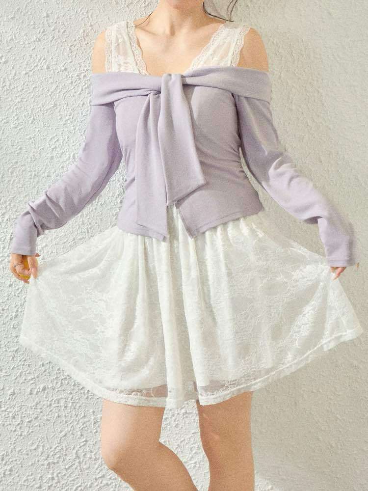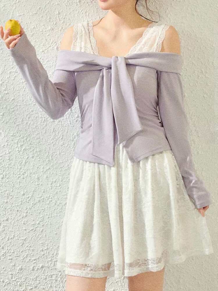 肩まわりをさりげなく見せる肩魅せデザインで、抜け感のあるレディライクな仕上がり♪