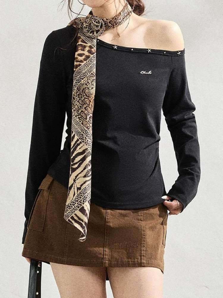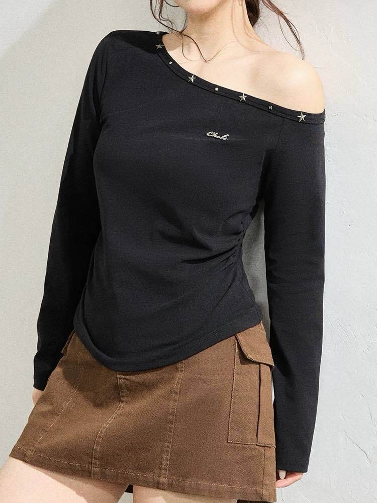 抜け感×エッジが今っぽ 星スタッズワンショルダープルオーバー おしゃれ 大人可愛い 星 セクシー クール 肌見せ Y2K 華奢見え 体型カバー 大きいサイズ 韓国 CH11569