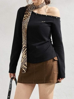 "星スタッズワンショルダープルオーバー"