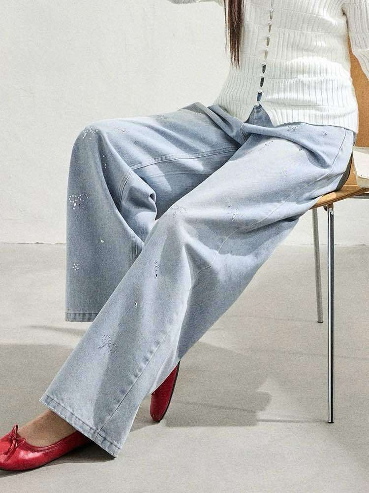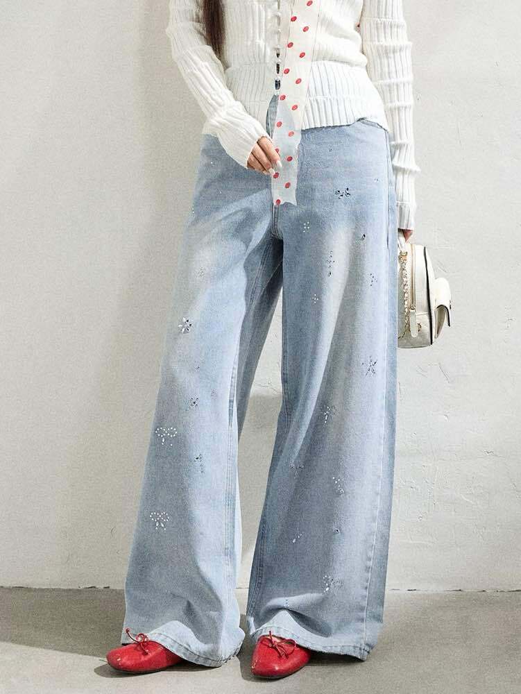 履くだけでグッとシャレ見え!主役級ラインストーンワイドデニムです♡
