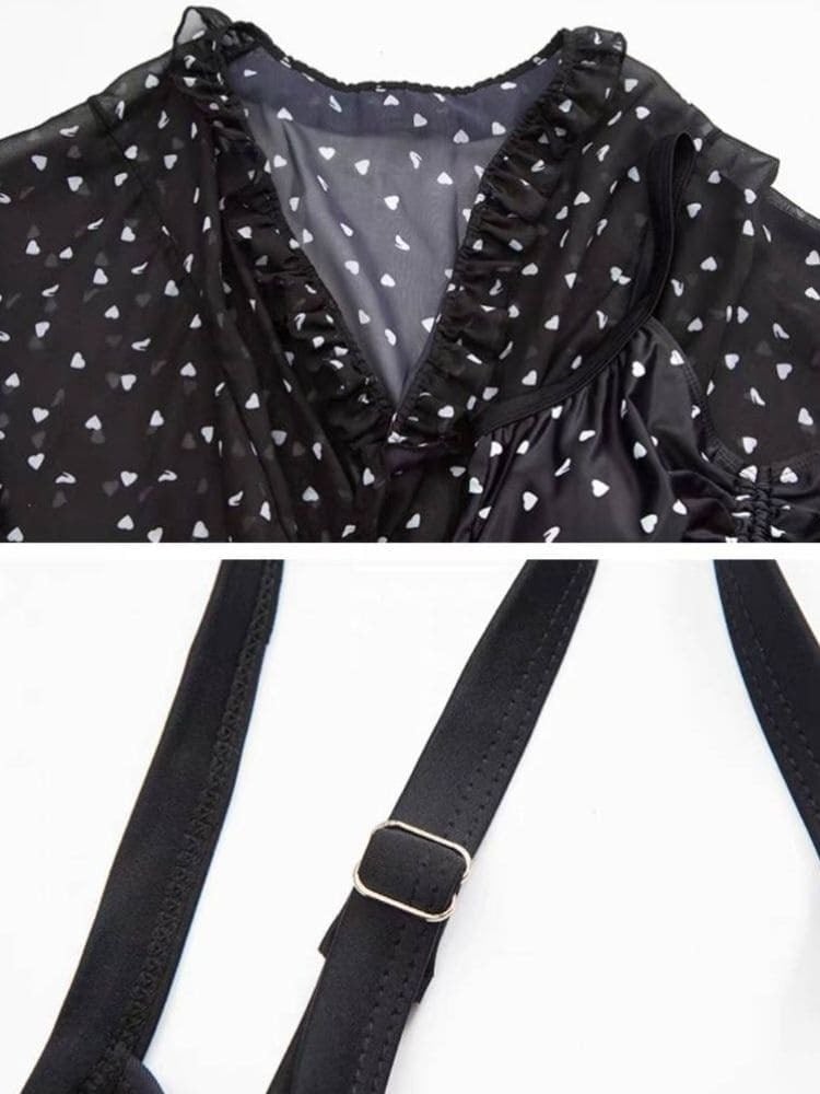 "ハート柄シアーフリル水着ワンピース"