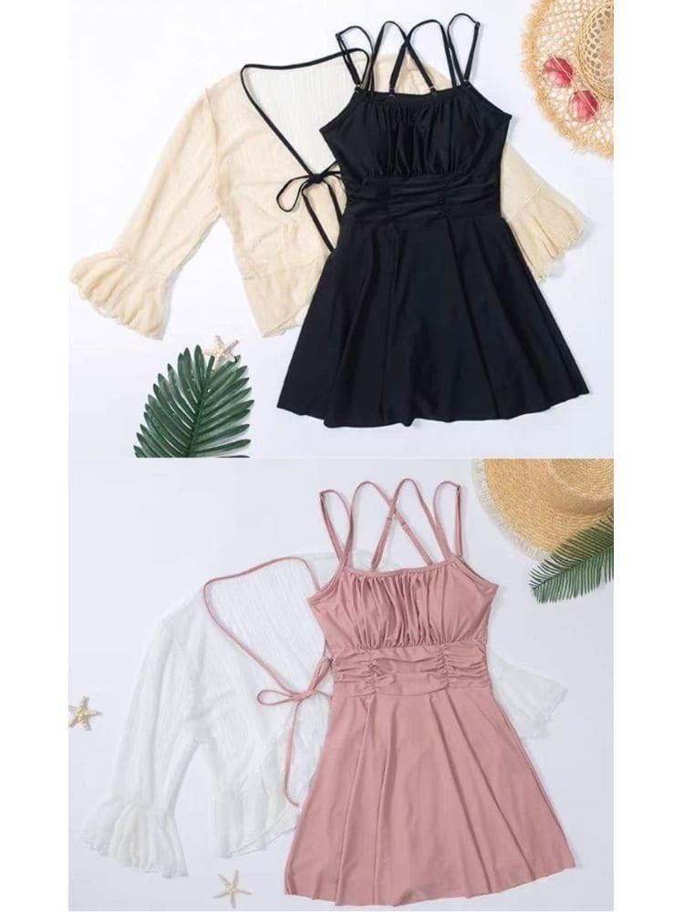 ふんわり軽やかなシアー素材の羽織と、シンプルで大人っぽいワンピース水着がセットになったアイテム♡