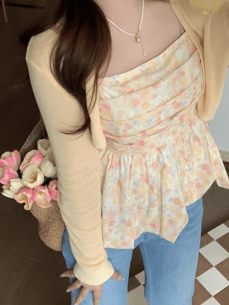 "小花柄ギャザートップスセット"
