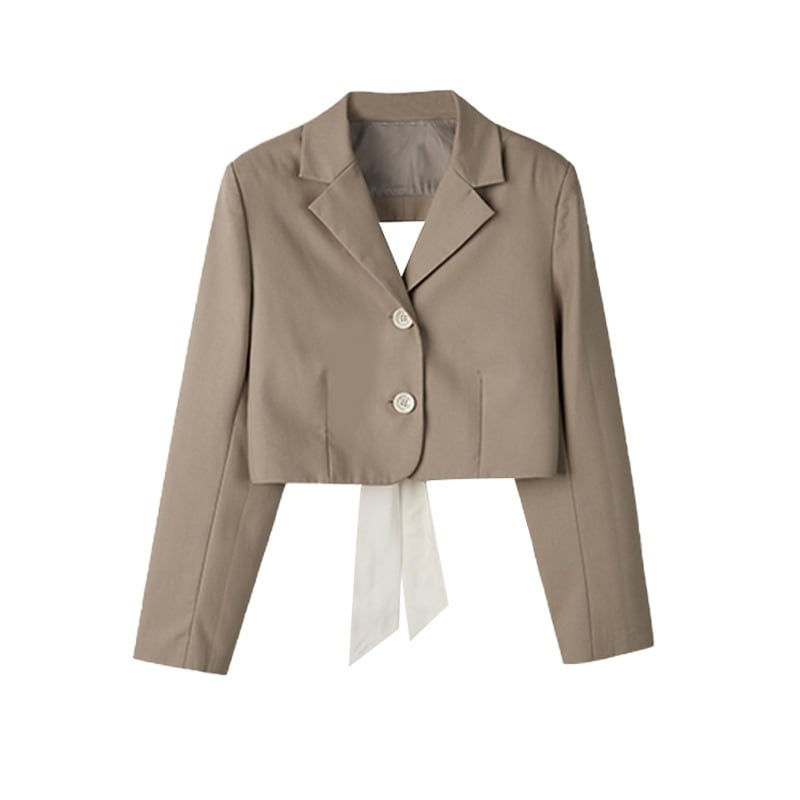 後ろ姿も可愛い!バックシャンリボンジャケット ショート丈 ガーリー 大人可愛い 大きいサイズ 韓国 CH2293