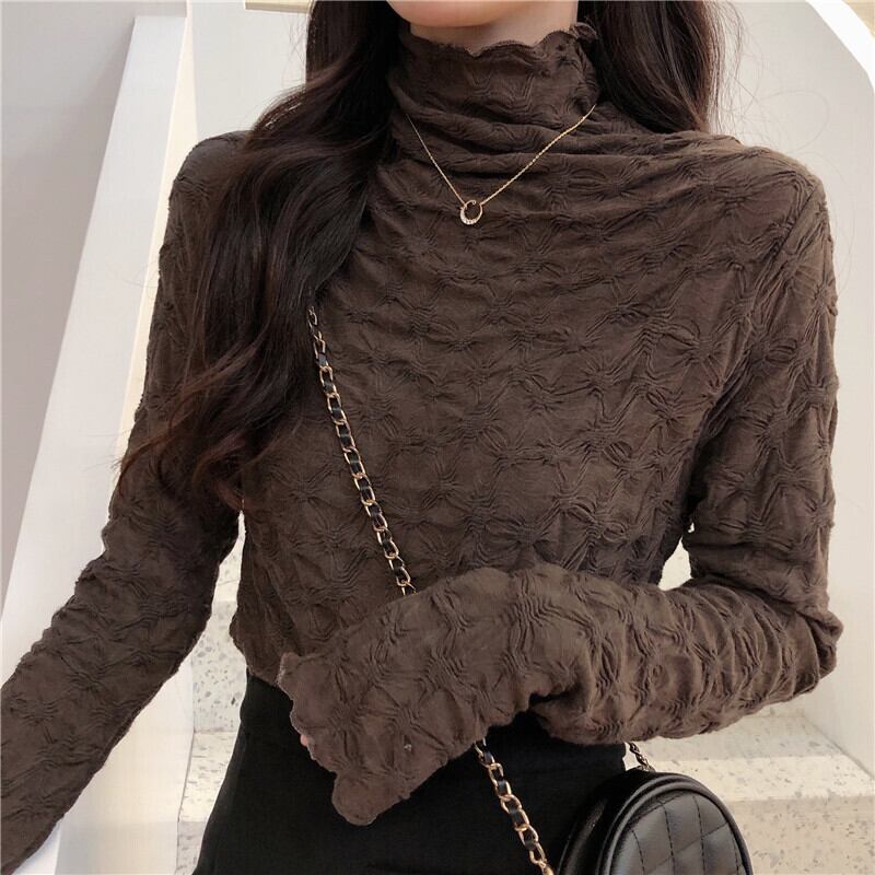 あったかくしゅくしゅハイネックカットソー しわ加工 ゆったり 長袖 フェミニン 大きいサイズ 韓国 CH3371