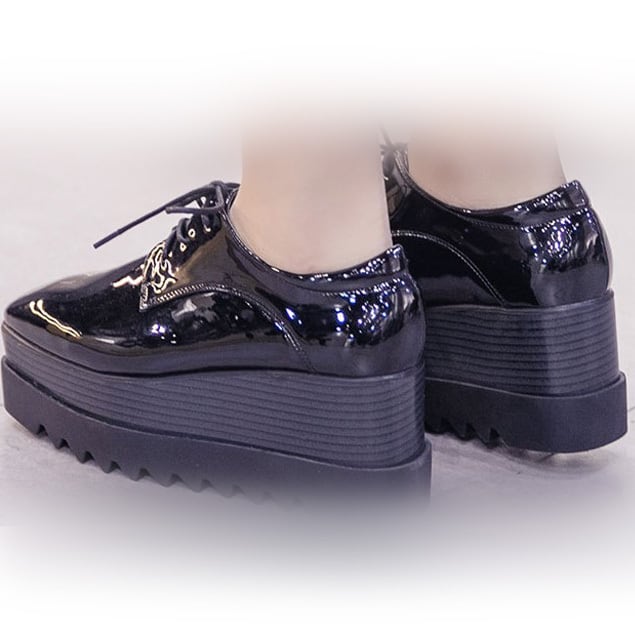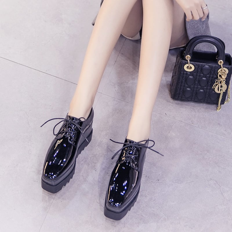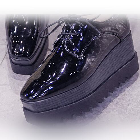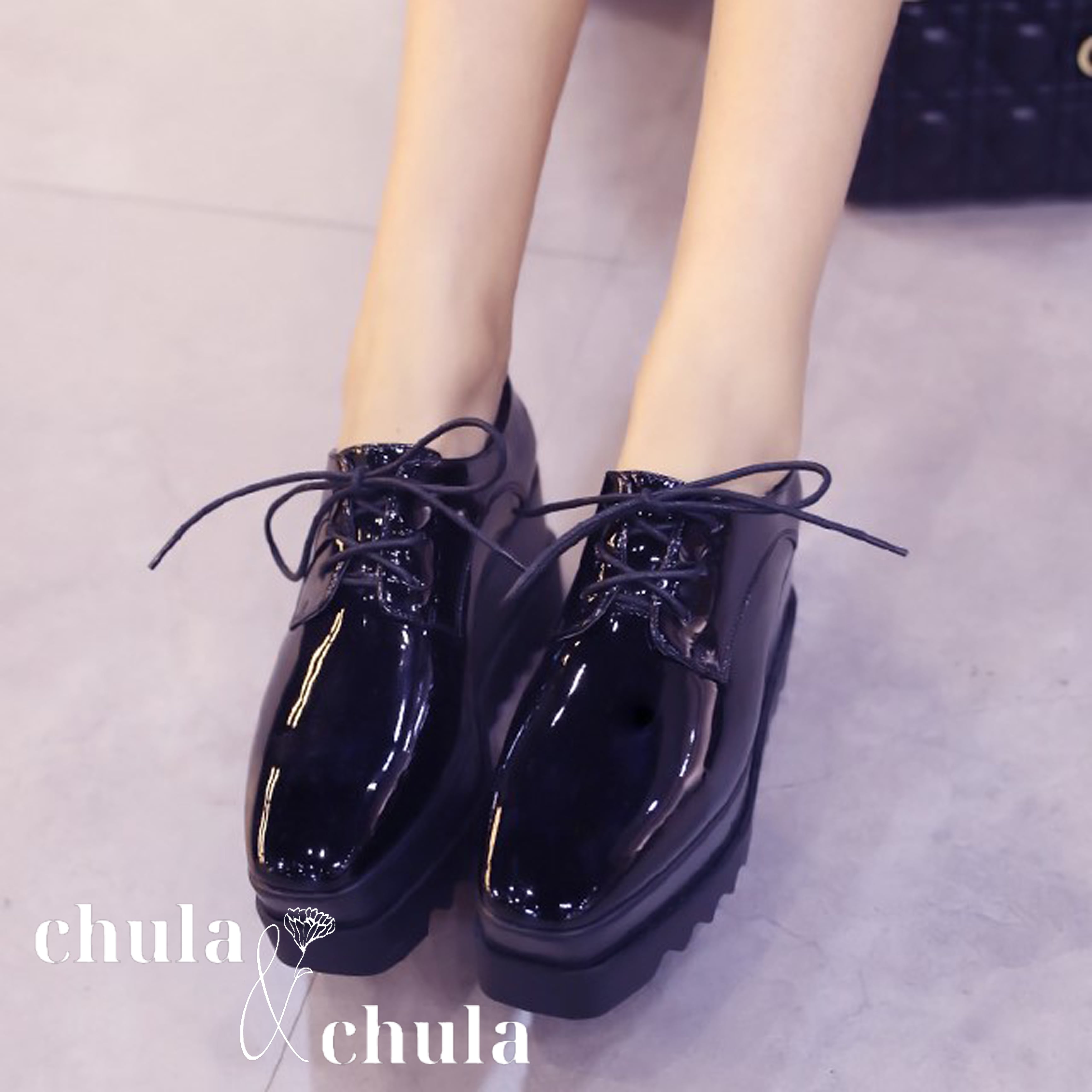 厚底レースアップシューズ ローファー エナメル 靴 大きいサイズ 韓国 CH3522
