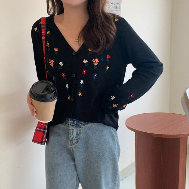 春の風を感じさせる大人可愛い1着 フラワーニットカーディガン 刺繍 薄手カーディガン 長袖 フェミニン カジュアル 大きいサイズ 韓国 CH8583