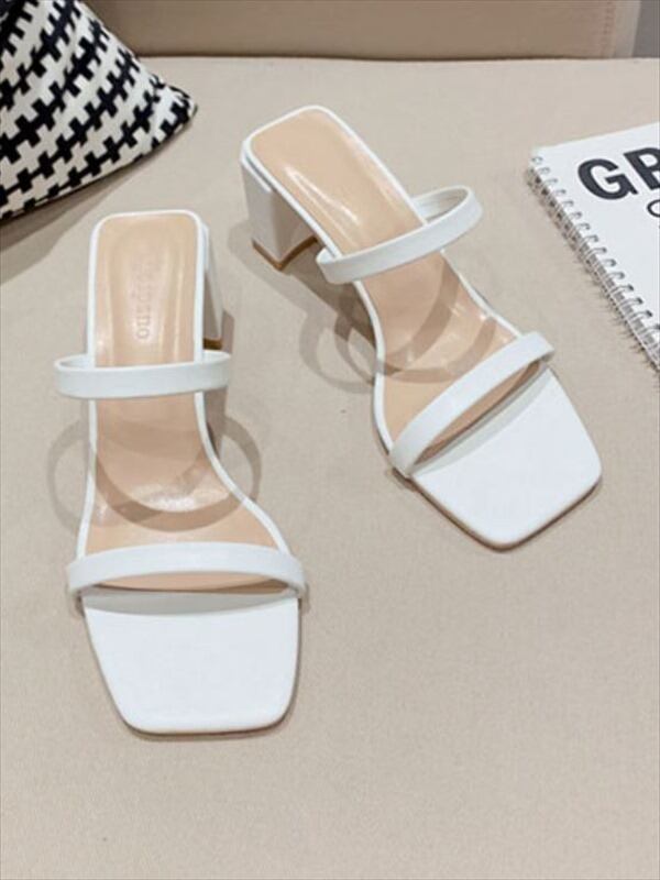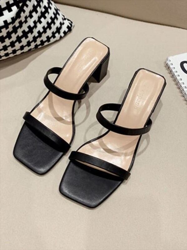 スクエアトゥダブルストラップミュール 大人カジュアル オープントゥ おしゃれ 大きいサイズ 韓国 CH3772