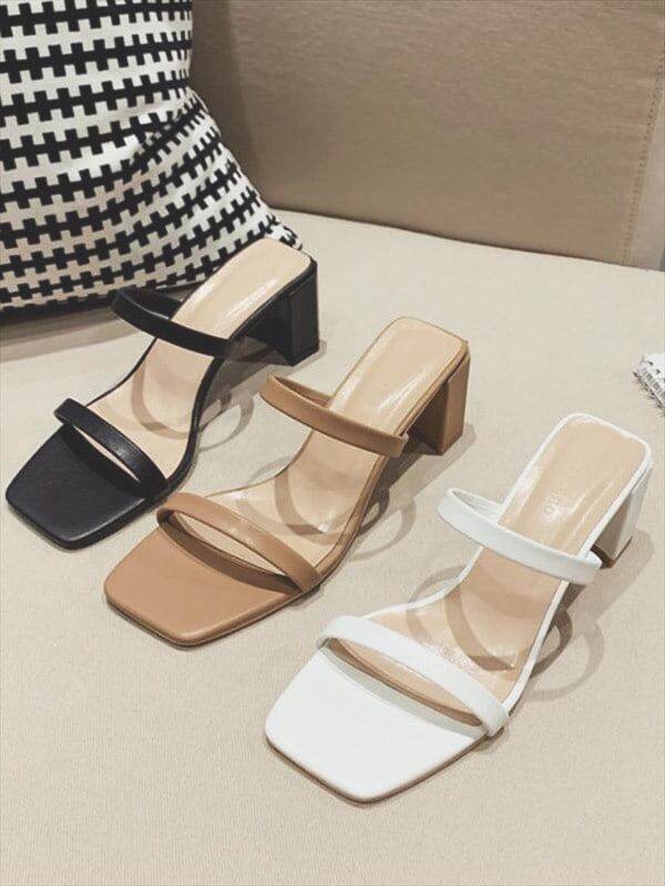 スクエアカットのつま先とかかとがコーデのポイントになるミュールです。