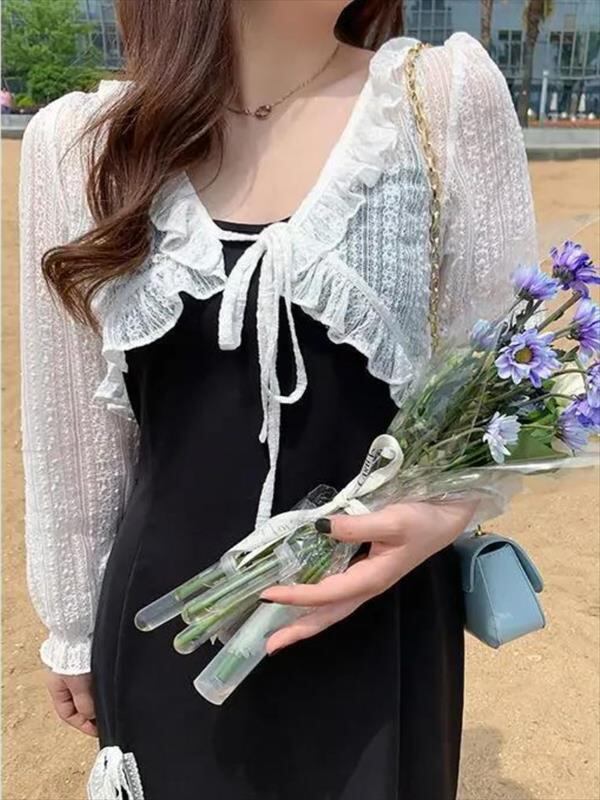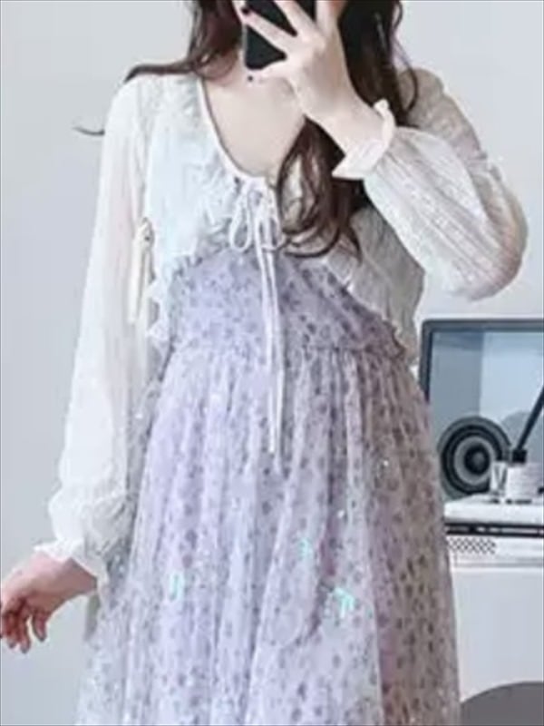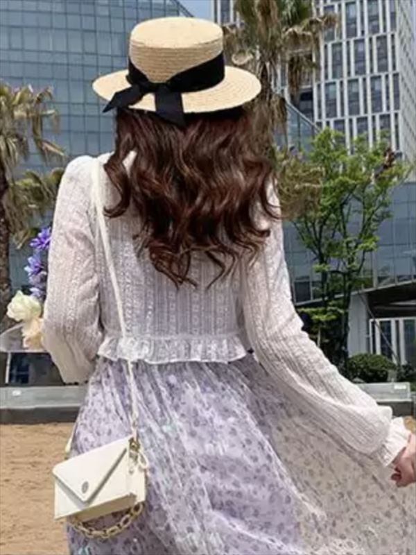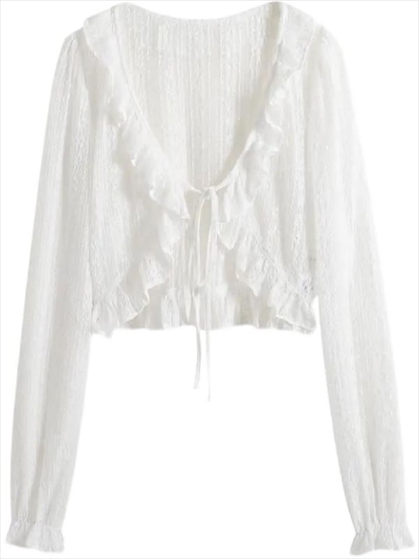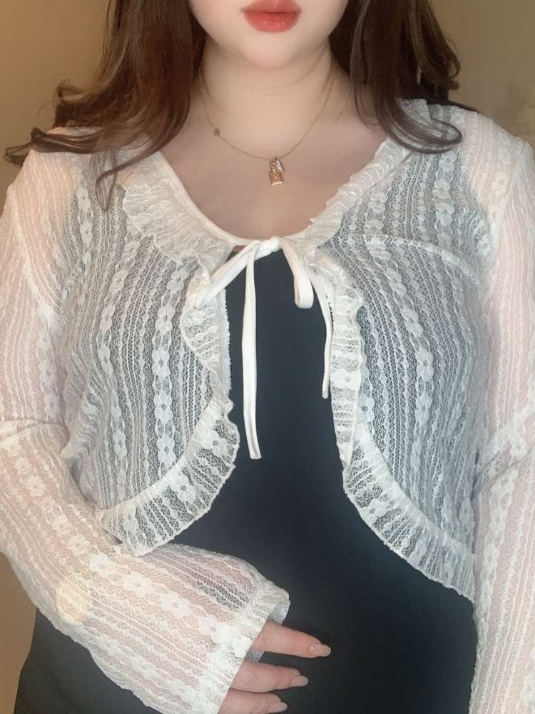 総レースフリルショートカーディガン キレカジコーデ Vネック 長袖 大きいサイズ 韓国 CH3856