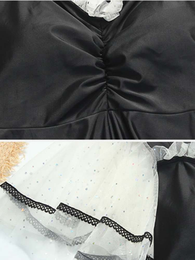 胸元のフリルとバックのレースアップが可愛いポイント♪
