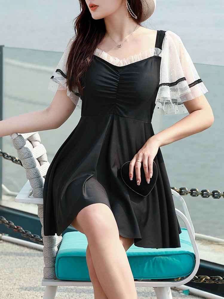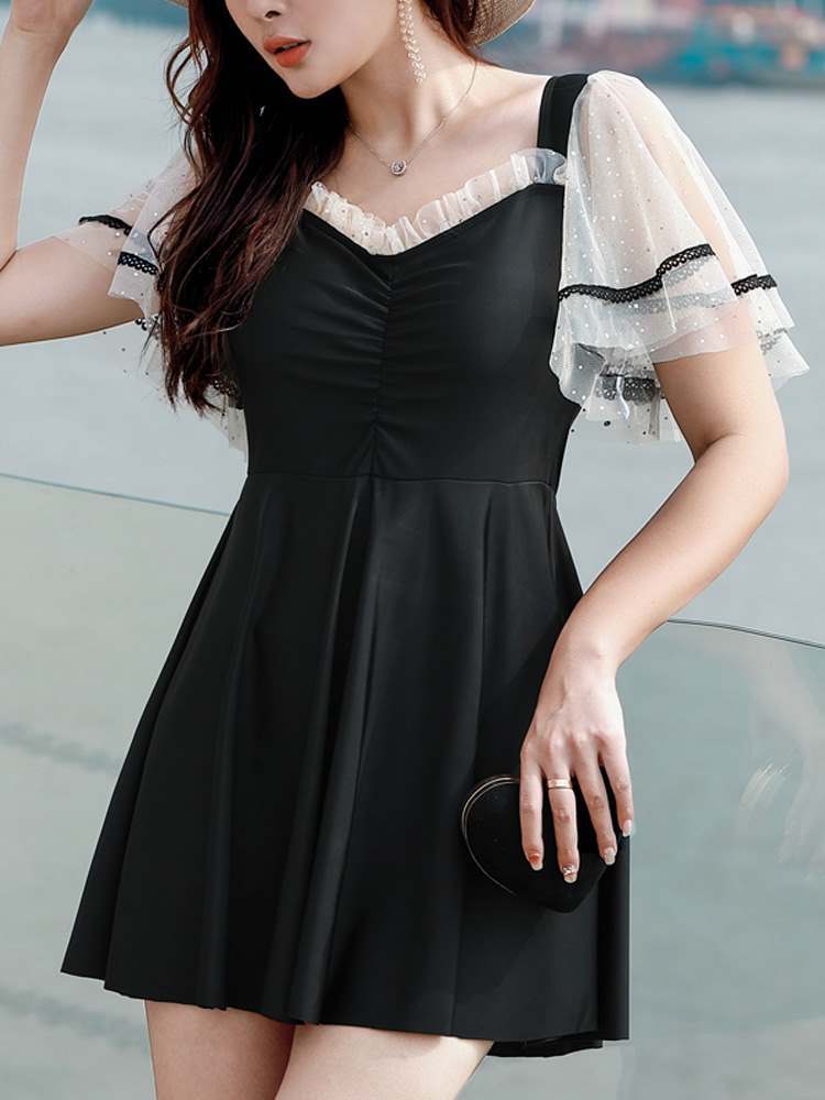 フリルスリーブ付ワンピース水着 半袖 シンプル 大人可愛い 大きいサイズ 韓国 CH4425